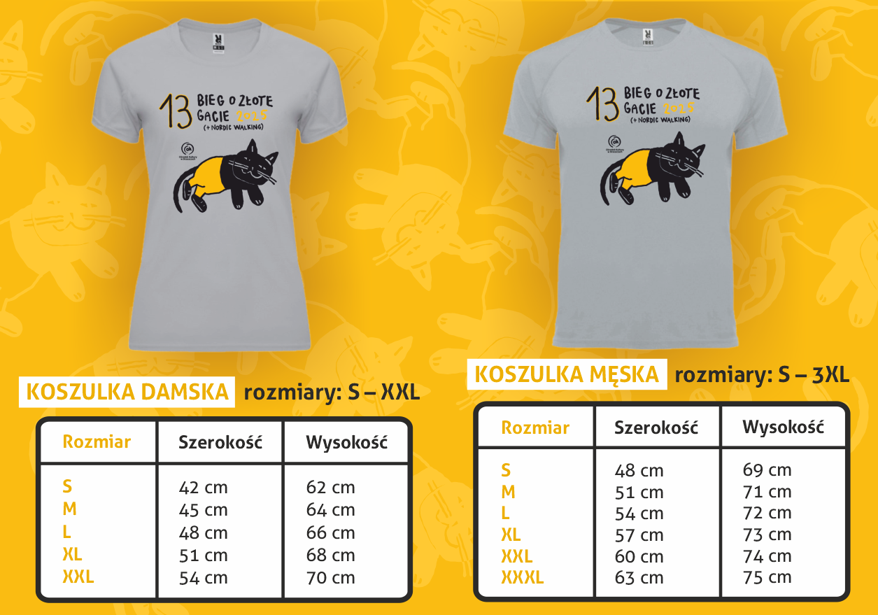 Po dokonaniu płatności do 24 marca 2025 r. zawodnicy mogą wybrać rozmiar koszulki. Sprawdź wymiary przed dokonaniem zapisu!