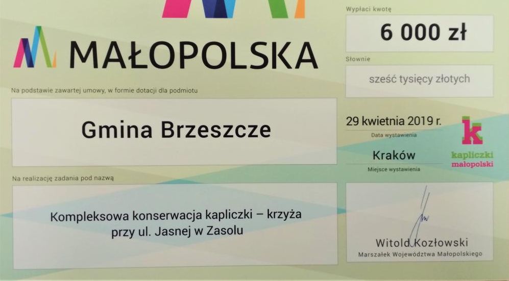 Gmina Brzeszcze na realizację swojego projektu uzyskała dotację celową z Województwa Małopolskiego w wysokości 6.000 zł.