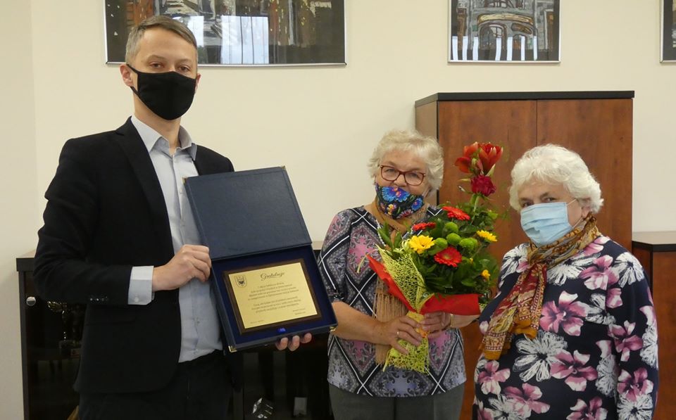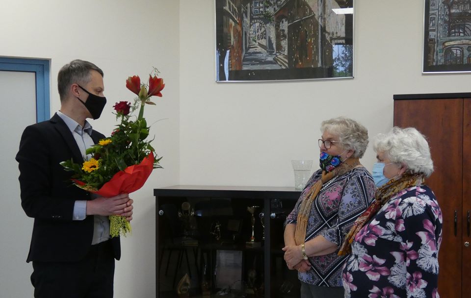 Na ręce przewodniczącej Anny Fajfer Burmistrz Radosław Szot uroczyście złożył gratulacje i życzenia z okazji jubileuszu 60-lecia Koła Gospodyń Wiejskich w Jawiszowicach.