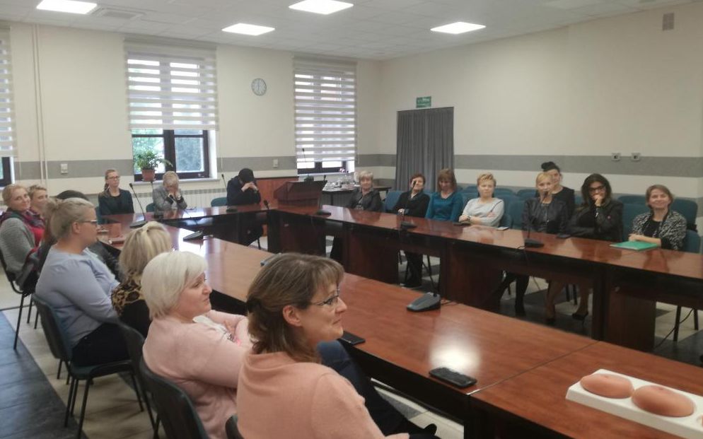 Ważną częścią spotkania – prócz podkreślenia wagi regularnych badań i lekarskich wizyt kontrolnych – była edukacja z zakresu samokontroli piersi , którą zobrazowano podczas ćwiczeń z wykorzystaniem fantomów piersi.