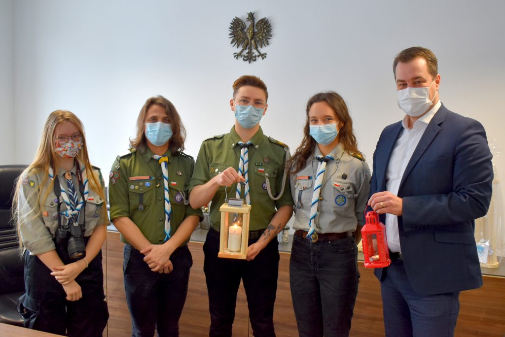 „Światło Nadziei” – to hasło tegorocznego Betlejemskiego Światła Pokoju. I z takim przesłaniem dotarli do starostwa harcerze: komendant hufca Wojciech Kubica oraz Martyna Boba, Karolina Kajdas i Kacper Hatłas.