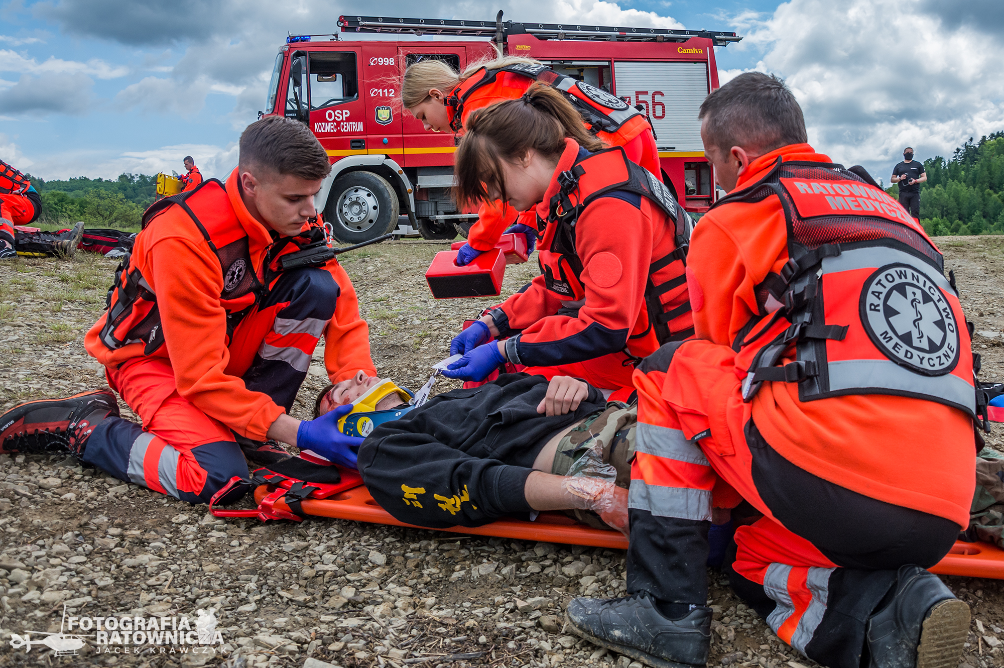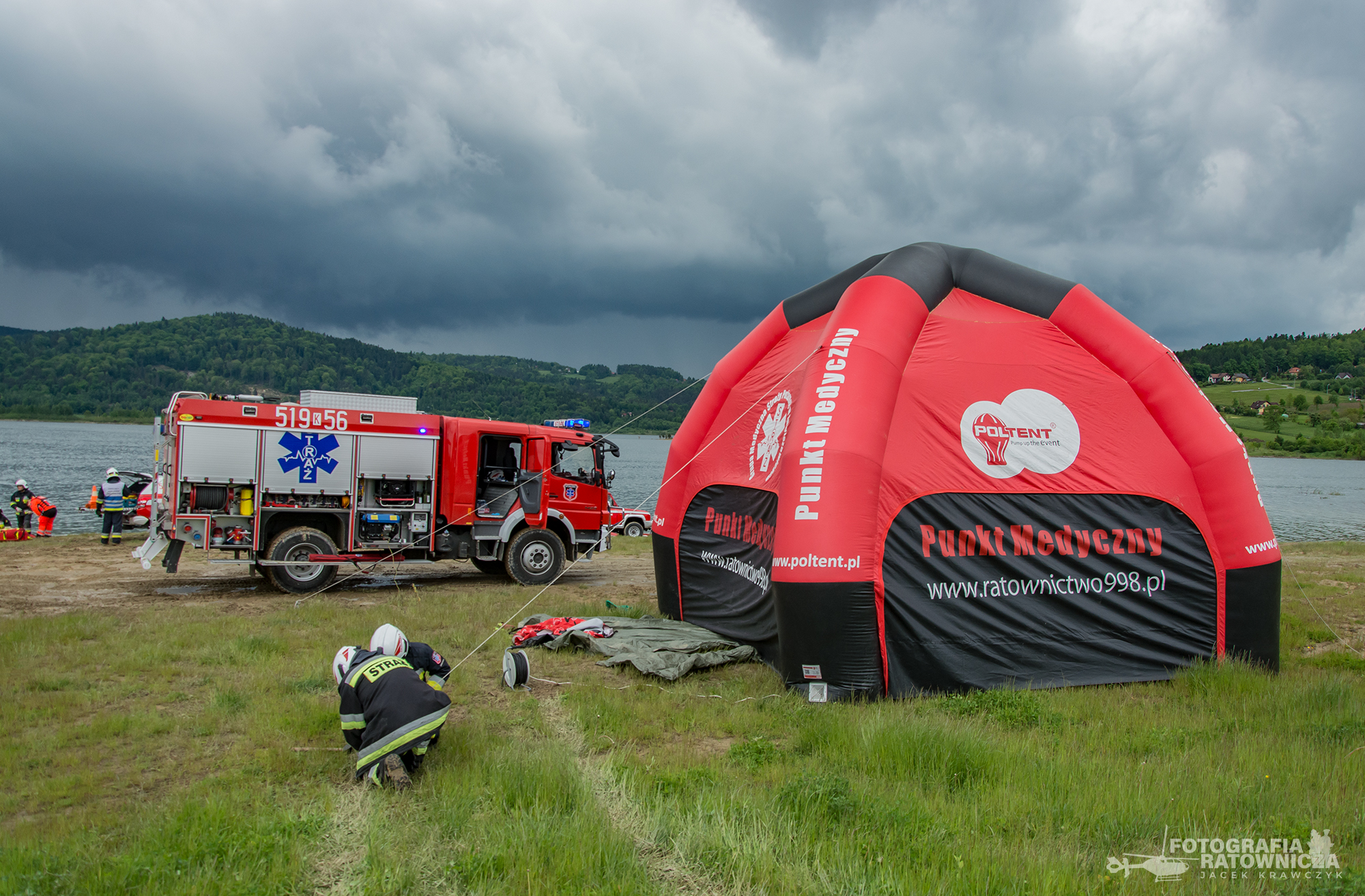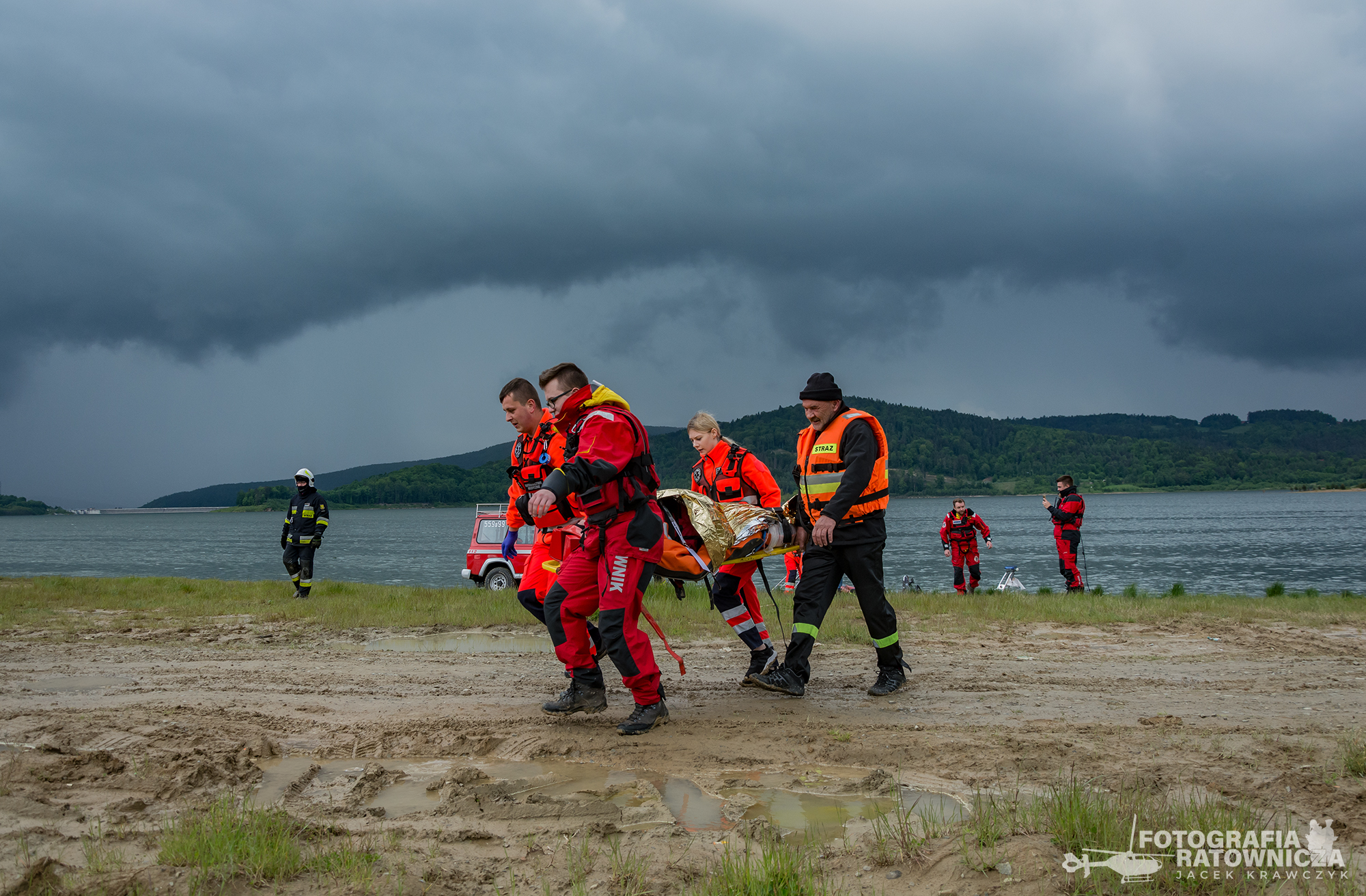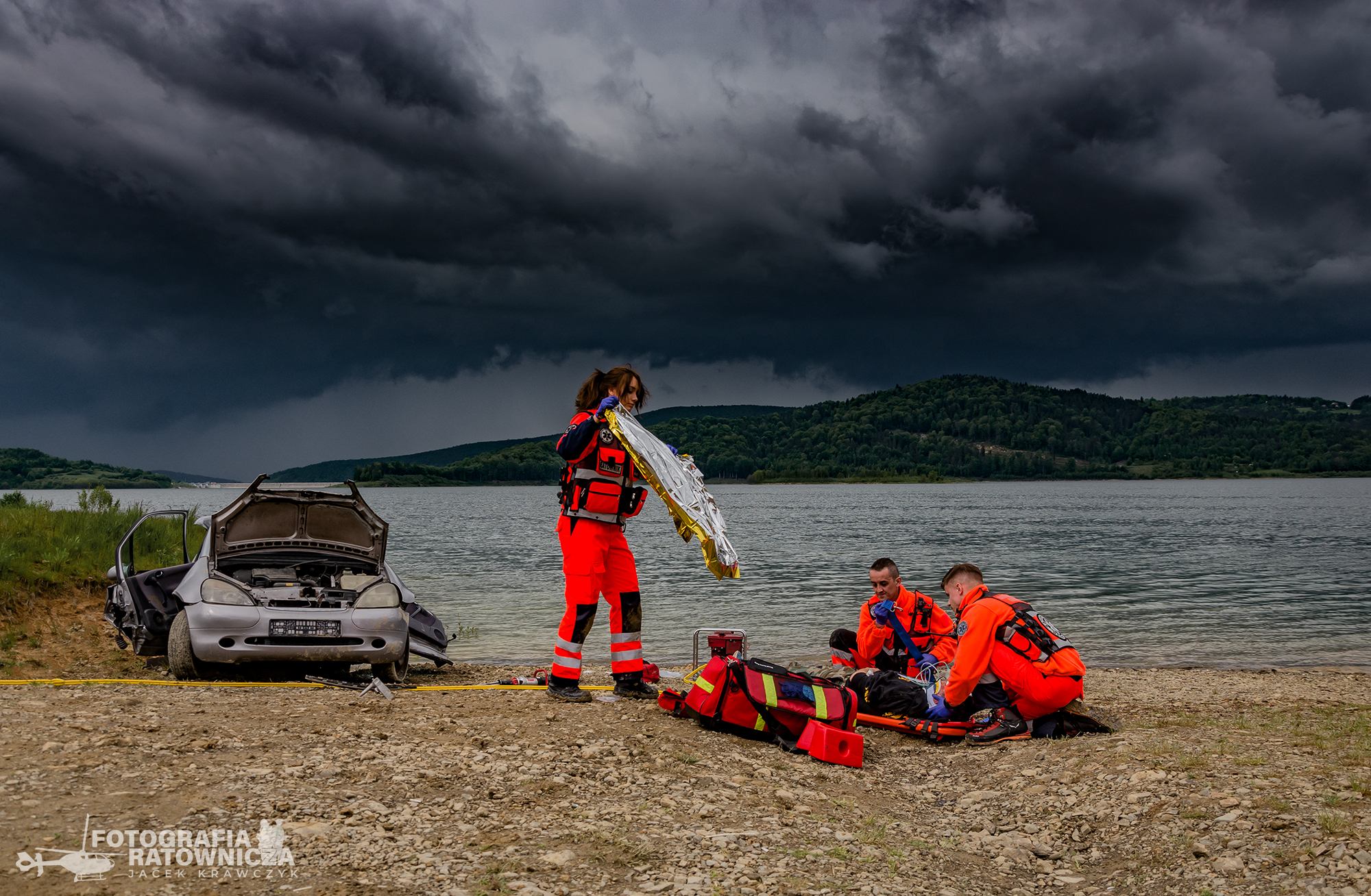 „W ćwiczeniach wzięły udział jednostki OSP i Grupy Ratownicze z powiatów oświęcimskiego, wadowickiego i nowotarskiego. Scenariusz ćwiczeń zakładał, że rozpędzony samochód uderzył z impetem w obwałowanie Jeziora Mucharskiego. Siła uderzenia, była na tyle mocna, że z pojazdu wprost do jeziora wypadły dwie osoby, a trzy zostały zakleszczone w pojeździe. Dodatkowo jeden ze świadków zdarzenia, próbował ratować osoby znajdujące się w wodzie, ale ze względu na opadnięcie z sił- sam stał się również osobą poszkodowaną. Ze względu na charakter manewrów w ćwiczeniach wykorzystaliśmy dwie jednostki pływające (łódź z OSP Mucharz i łódź z Wodnego Pogotowia Ratunkowego w Nowym Targu). Celem ćwiczeń było sprawdzenie gotowości ratowniczej jednostek biorących udział w manewrach, a także wypracowanie procedur współdziałania jednostek współpracujących z Systemem Państwowego Ratownictwa Medycznego” – mówi Dawid Burzacki, koordynator manewrów.