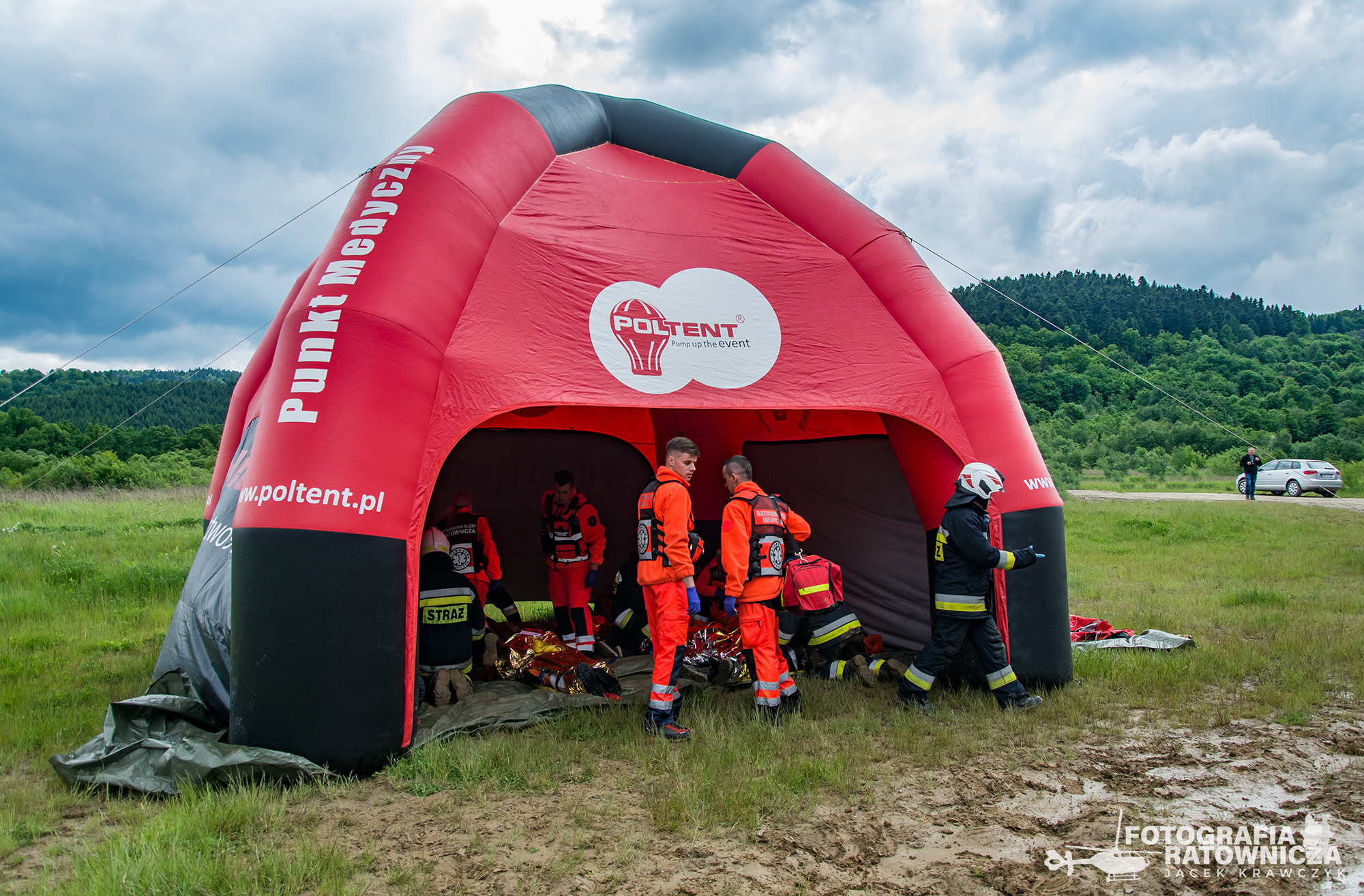 „Strażacy i ratownicy bez większych problemów poradzili sobie z przygotowanym zadaniem pomimo tego, że w ostatnich minutach pozoracji przez Mucharz przetoczyła się potężna ulewa. Dzięki wsparciu Partnera Głównego- Województwa Małopolskiego wszyscy uczestnicy, mogli posilić się ciepłym posiłkiem. Na zakończenie ćwiczeń każdy otrzymał pamiątkową koszulkę.