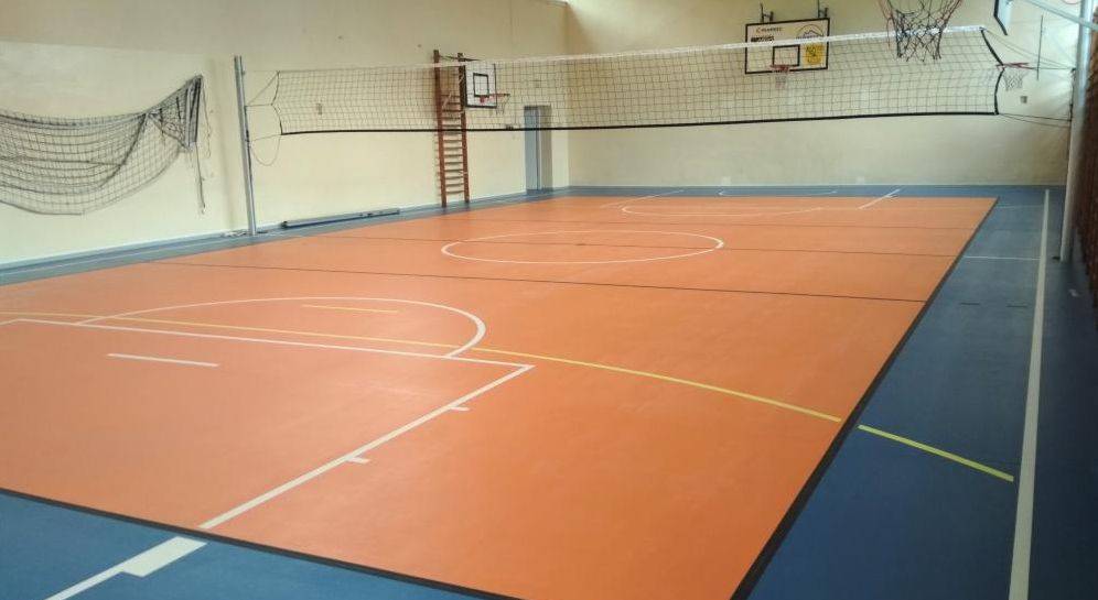 • remont posadzki sali gimnastycznej wraz z montażem trzech słupków aluminiowych do siatkówki i dostawą dwóch siatek do siatkówki.