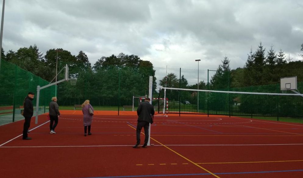 • dostawa wyposażenia boisk (bramki piłkarskie – 2 szt., kosze do koszykówki – 4 szt., siatki wraz ze słupkami do siatkówki – 2 kpl., siatka do badmintona)