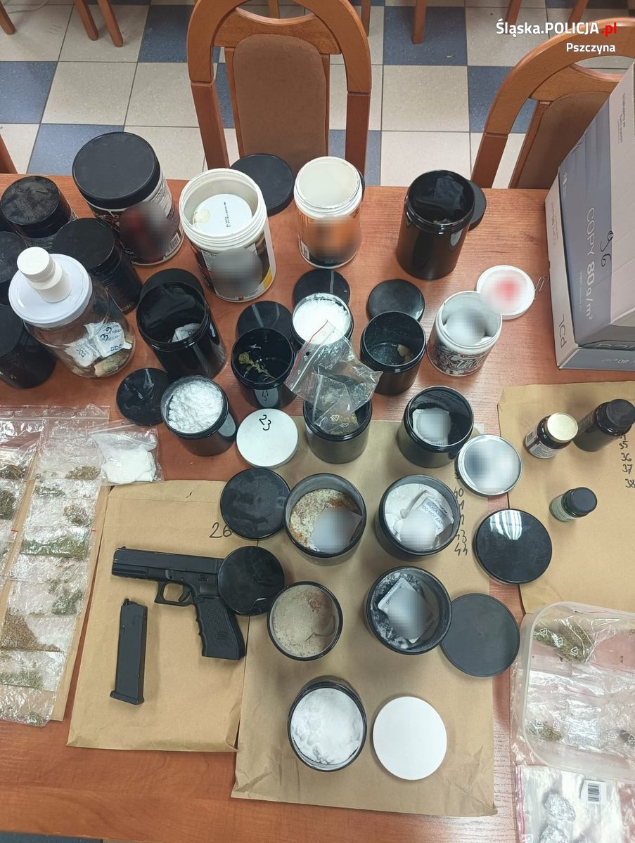 W Brzeszczach policjanci z Pszczyny, przy wsparciu zespołu bojowego Samodzielnego Pododdziału Kontrterrorystycznego Policji z Katowic, zatrzymali dwóch mężczyzn podejrzewanych o handel narkotykami i ich udzielanie nieletnim. W trakcie akcji, funkcjonariusze zabezpieczyli blisko 3 kg nielegalnych substancji, w tym amfetaminę, mefedron, marihuanę oraz grzyby halucynogenne. Znaleziono również sprzęt do porcjowania narkotyków, gotówkę oraz broń.