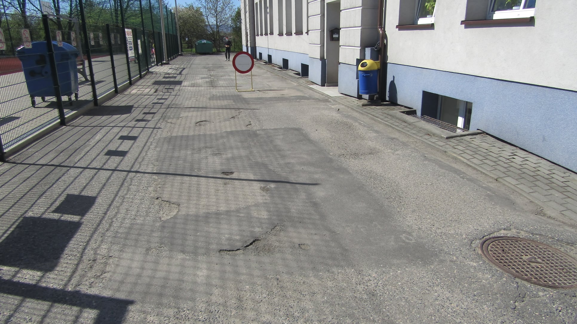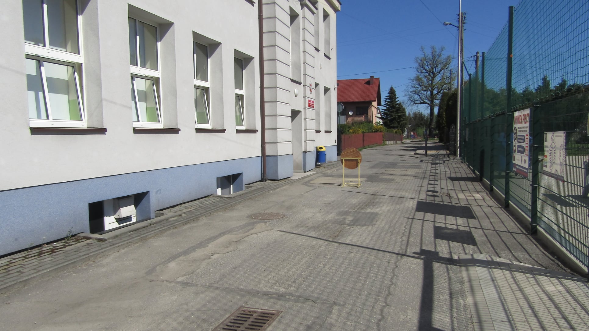 Ponadto realizacja zadania obejmuje przebudowę ul. Szkolnej, polegającą na wykonaniu nowej konstrukcji i nawierzchni dróg, przełożeniu i regulacji wysokościowej istniejących zjazdów do posesji i wejść do budynku szkoły, częściowo chodników o nawierzchni brukowej wraz z uzupełnieniem ich podbudowy i nawierzchni. Wykonane zostaną nowe odcinki kanalizacji deszczowej – przykanaliki. Powyższy zakres prac wiąże się także z koniecznością wykonania zabezpieczenia uzbrojenia podziemnego oraz wymiany przyłączy wody zlokalizowanych w pasie drogowym ul. Szkolnej.