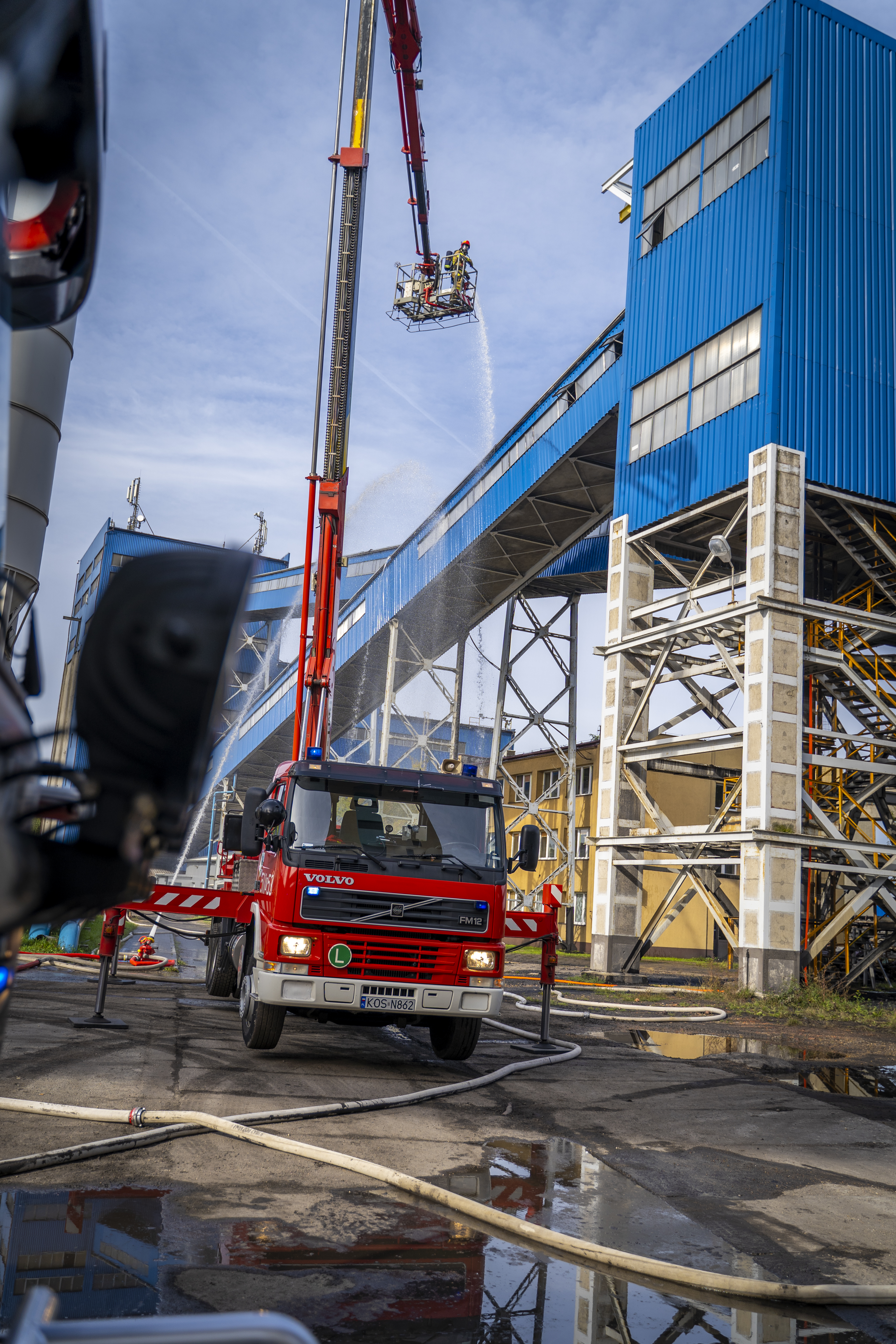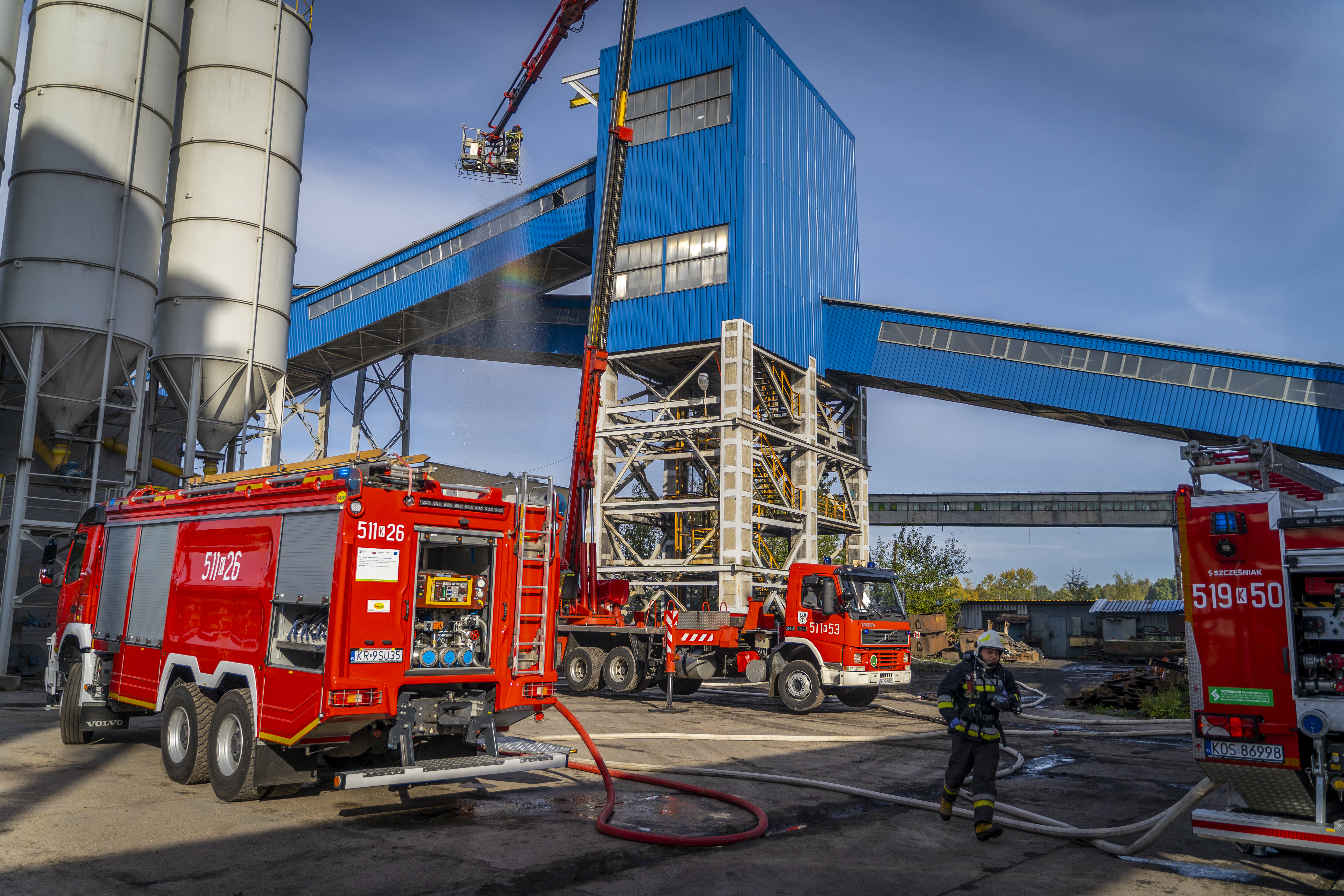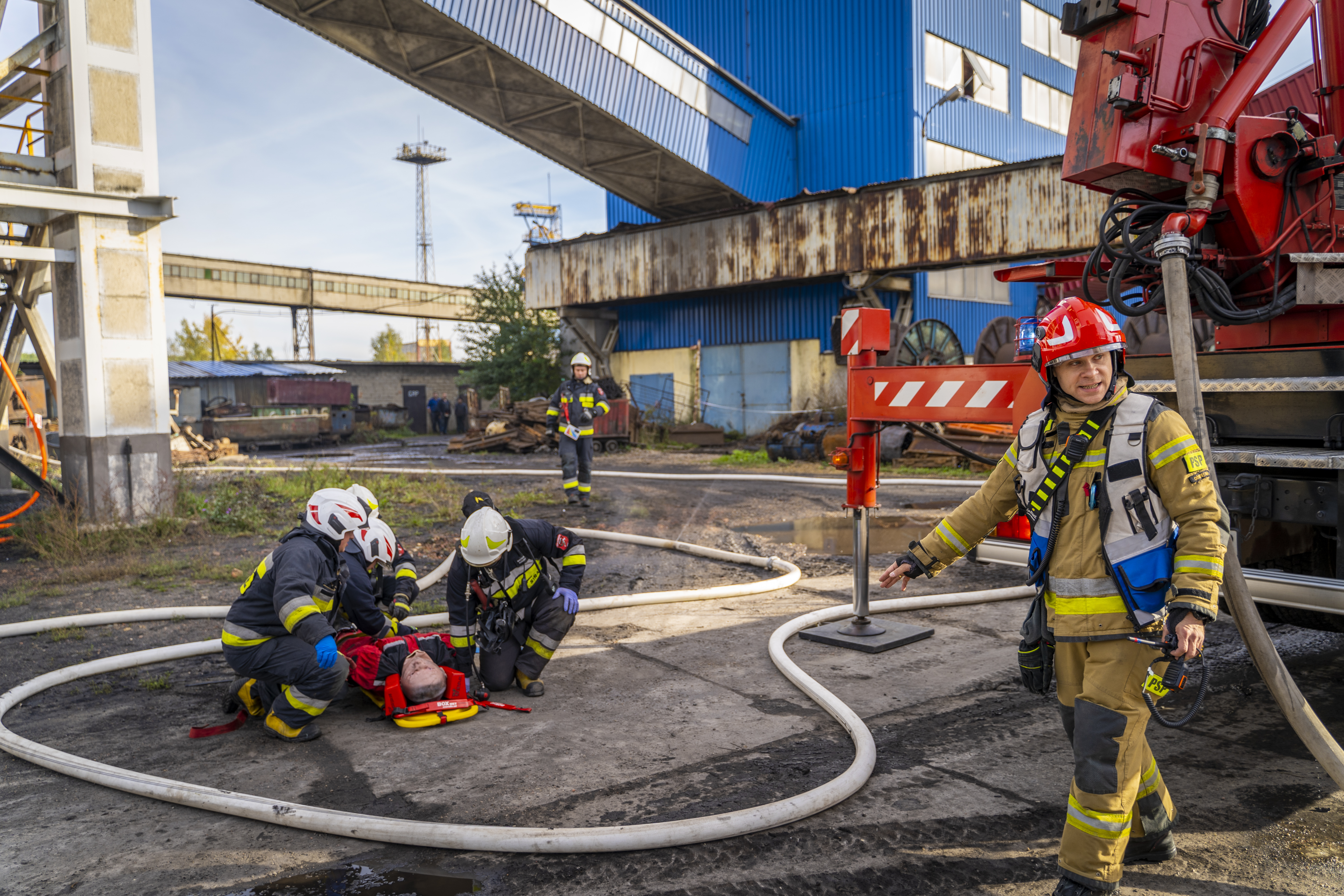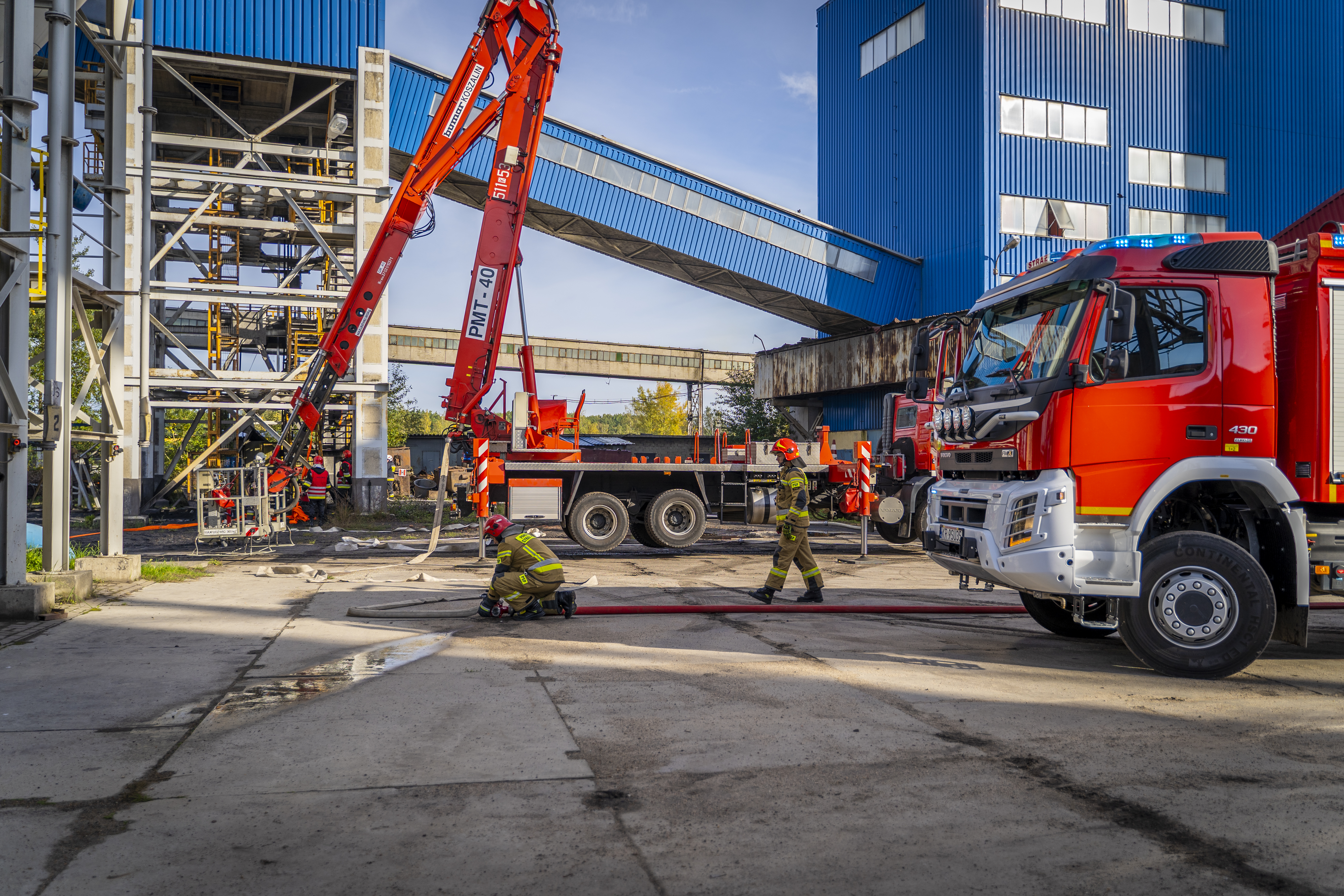 „Ćwiczenia prowadzone na zakładzie obejmowały 3 epizody, które zakładały m.in. pożar na terenie stacji odmetanowania kopalni, pożar przenośnika taśmowego na wysokości” – mówi mł. bryg. inż. Zbigniew Jekiełek z JRG Oświęcim.