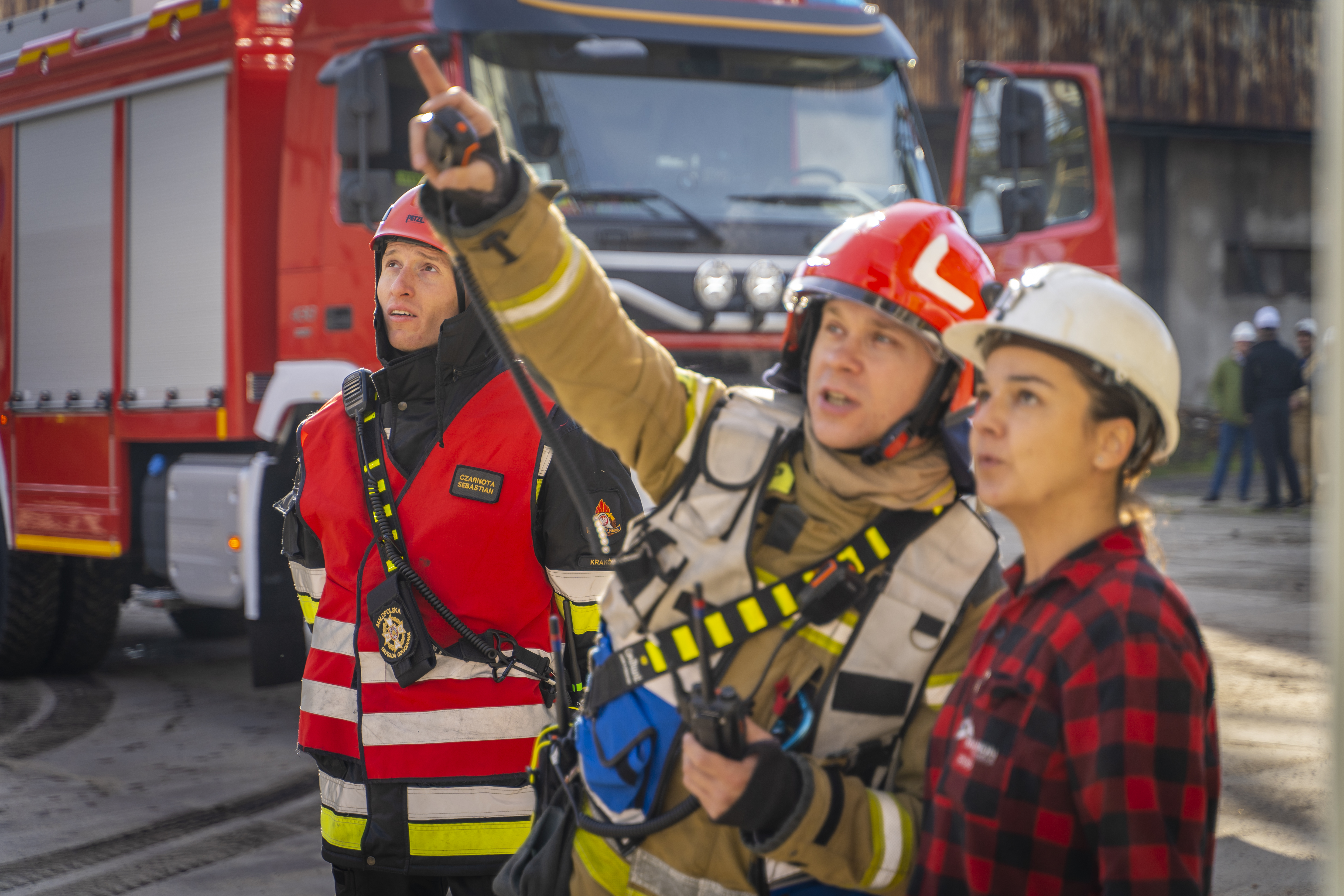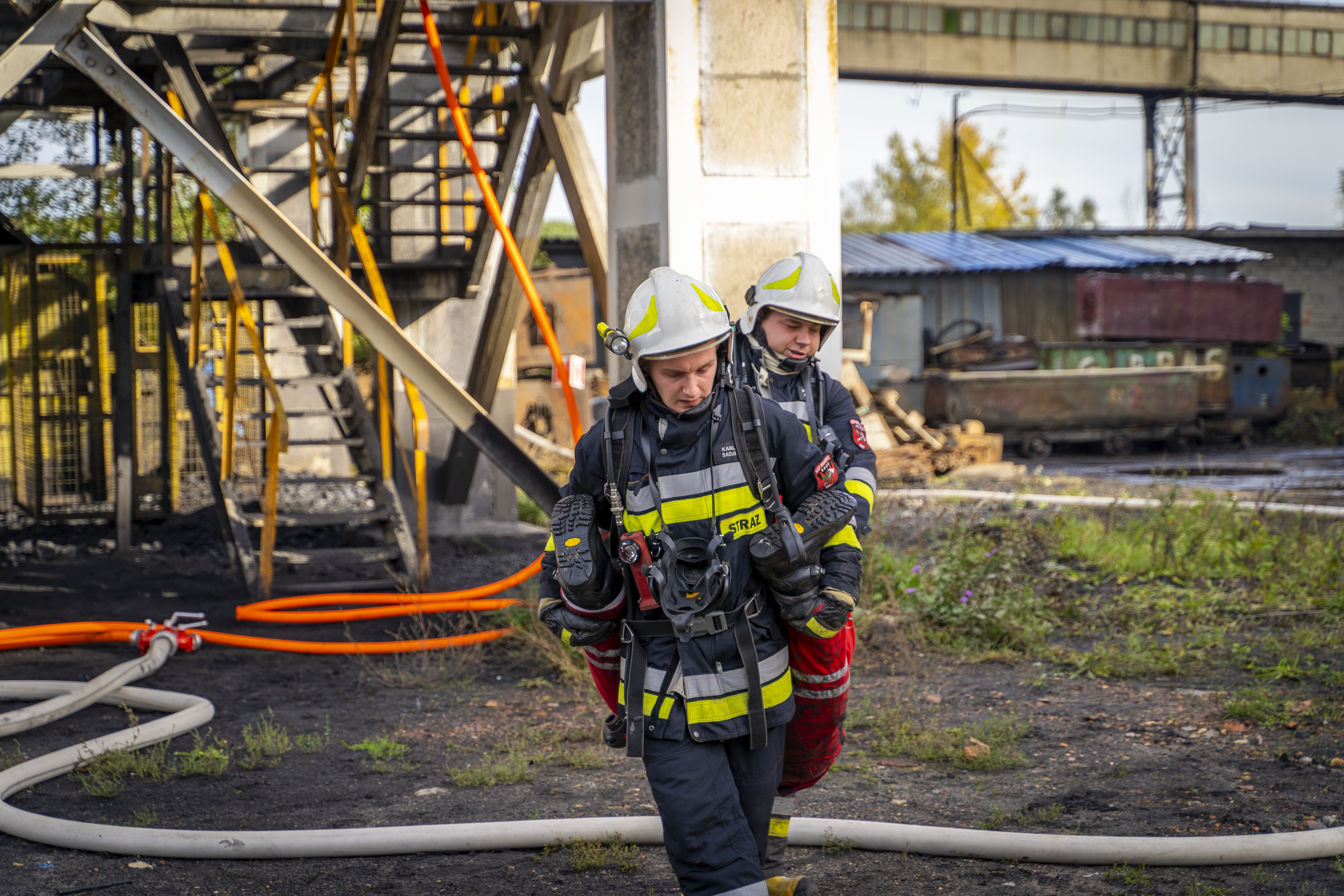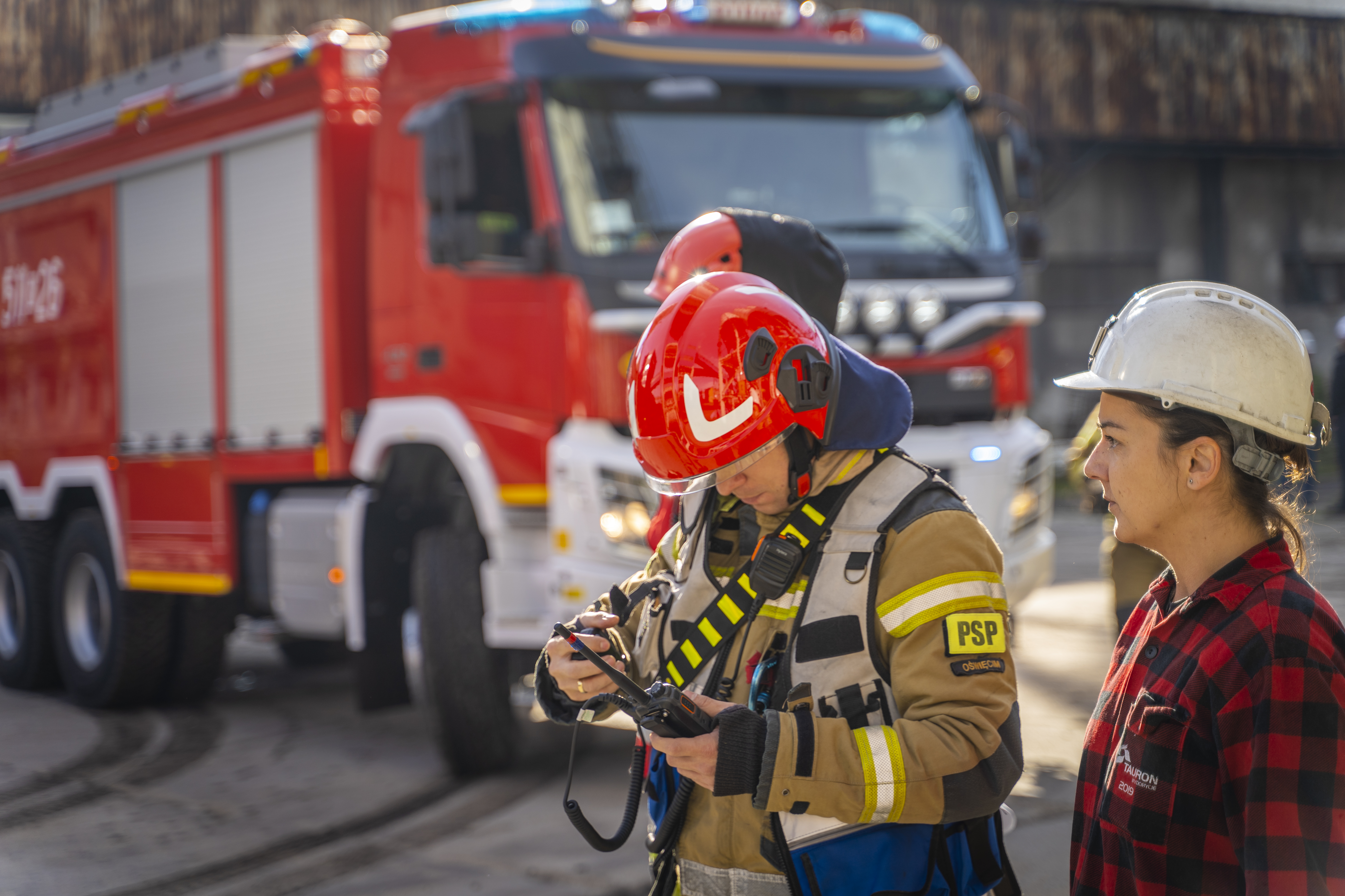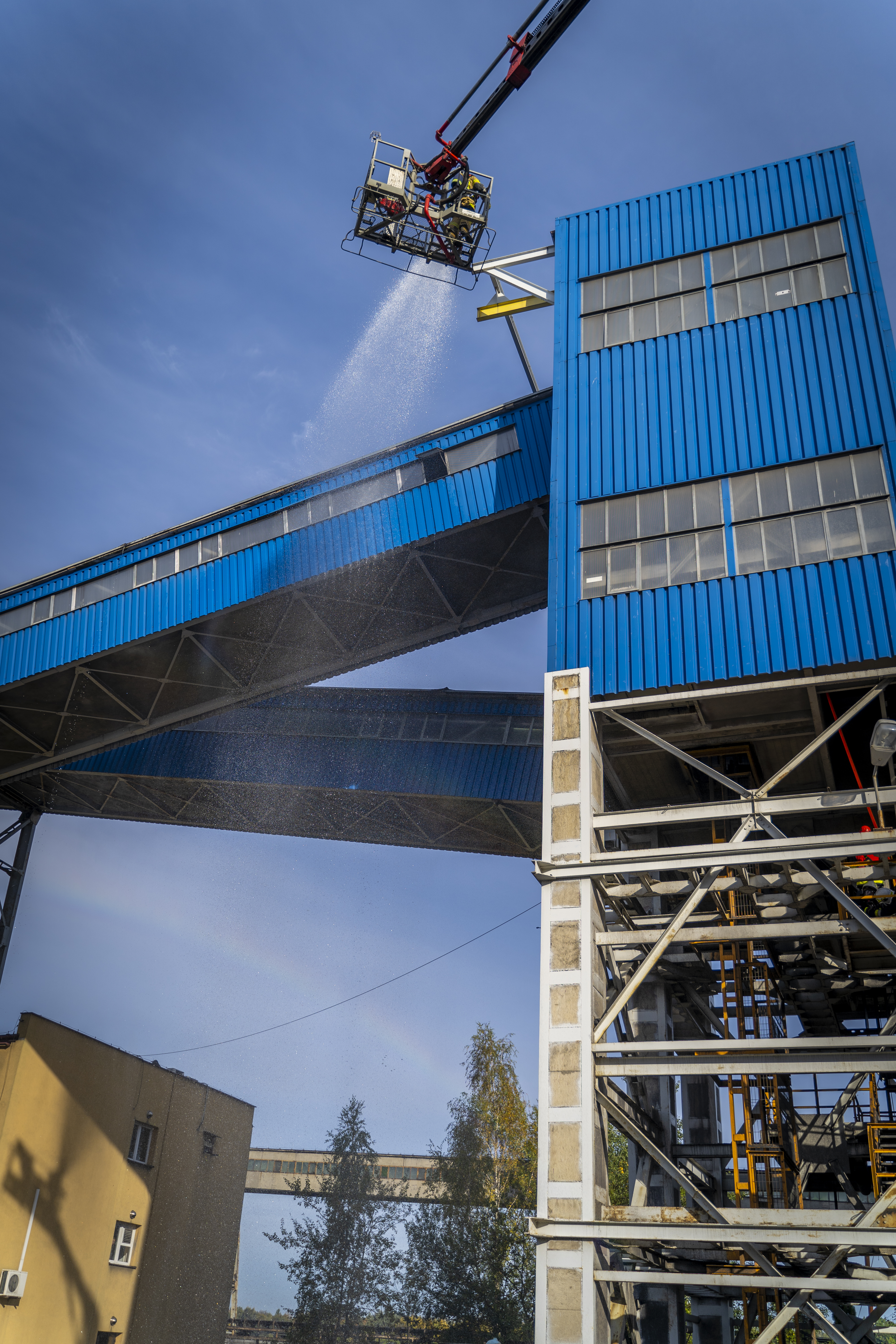 „Ćwiczenia prowadzone na zakładzie obejmowały 3 epizody, które zakładały m.in. pożar na terenie stacji odmetanowania kopalni, pożar przenośnika taśmowego na wysokości” – mówi mł. bryg. inż. Zbigniew Jekiełek z JRG Oświęcim.