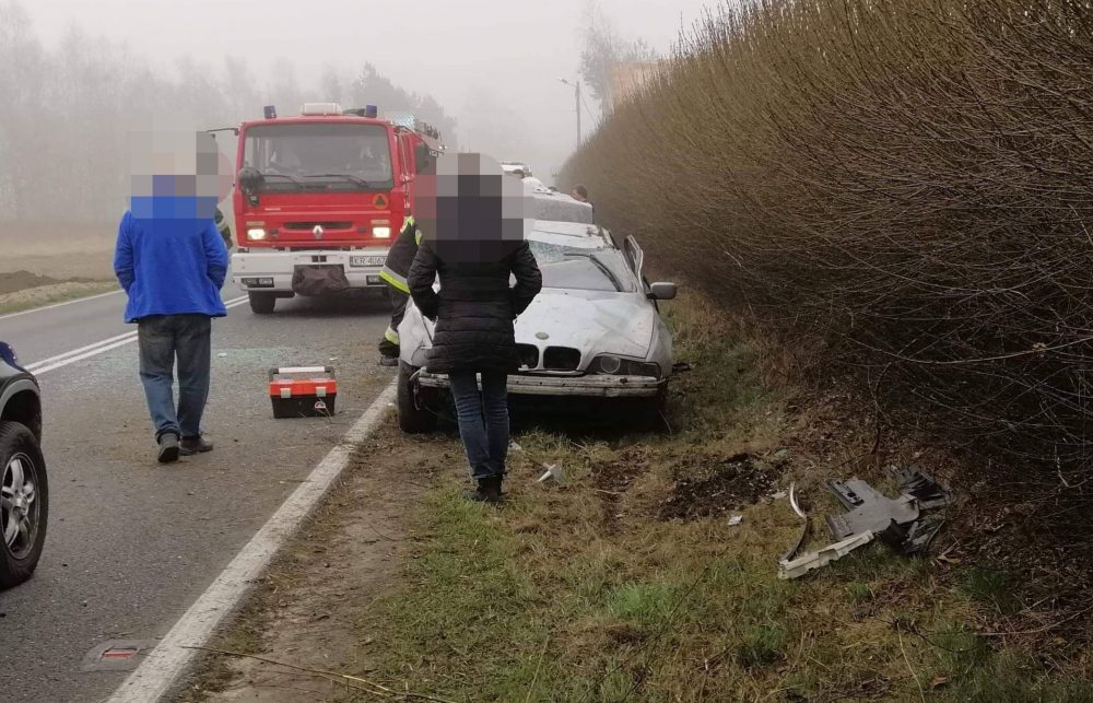 Jako pierwsi na miejscu zdarzenia, pojawili się strażacy z OSP Jawiszowice, którzy prywatnym samochodem najechali na wypadek.