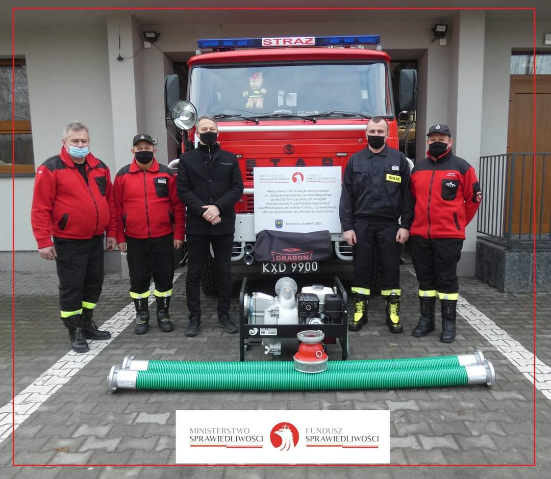 Umowa dotacji z Ministrem Sprawiedliwości została podpisana 19 listopada 2020 roku. W ramach przyznanych środków finansowych oraz wkładu własnego Gminy Brzeszcze zakupiono wyposażenie, motopompy, zarekomendowane przez zespół weryfikacyjny Państwowej Straży Pożarnej.