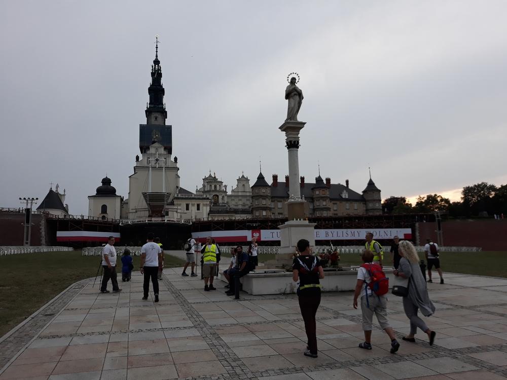 Sobotnia rześkość poranka dość szybko przemieniła się w 30-stopniowy upał, który bynajmniej nie należy do sprzymierzeńców na tym etapie wędrówki. Nie bez trudu udało się jednak dotrzeć do Częstochowy przed godziną 18.00. Było to o tyle istotne, że po raz pierwszy, plan pielgrzymki zakładał Eucharystię w sobotę. Uczestniczyliśmy w niej, razem z miejscowymi parafianami, w kościele Najświętszego Serca Pana Jezusa w Częstochowie. Dziękujemy Księdzu Proboszczowi za ciepłe przyjęcie i możliwość wspólnego przeżywania Mszy Świętej, którą „pielgrzymkowi” kapłani odprawili w naszych intencjach, również tych, powierzonych nam przez formularz na stronie internetowej pielgrzymki lub osobiście. Intencje zostały przez Mszą odczytane i złożone na ołtarzu. W tej Eucharystii uczestniczyła również dwójka pielgrzymów, którzy w nocy zrezygnowali z dalszego udziału. Jak sami stwierdzili – „nie można tego tak zostawić”. Dojechali więc na Mszę, a po niej uczestniczyli w dalszym pielgrzymowaniu. Po odpoczynku, ok. godz. 19.30, grupa  wyruszyła na ostatni, niespełna 5-kilometrowy odcinek, by godzinę później upaść na twarz przed Matką Jasnogórską.
