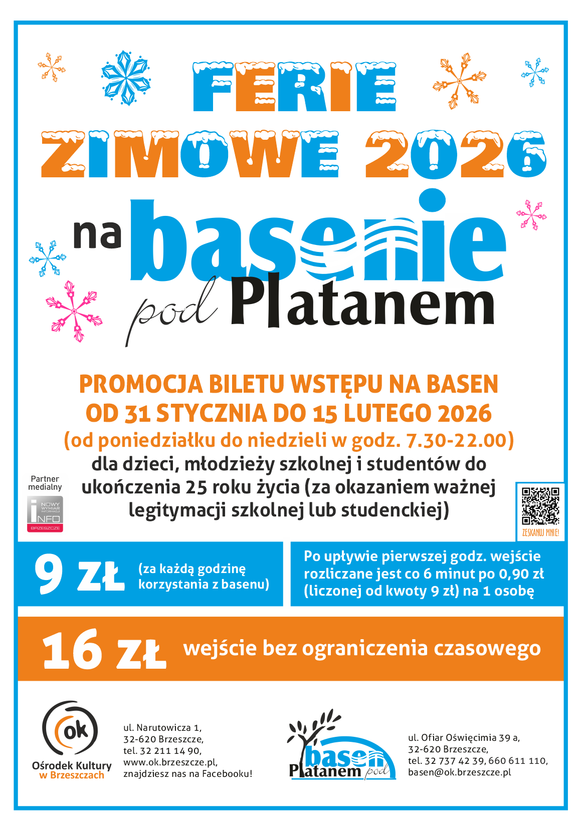 FERIE ZIMOWE 2026 NA BASENIE POD PLATANEM W BRZESZCZACH