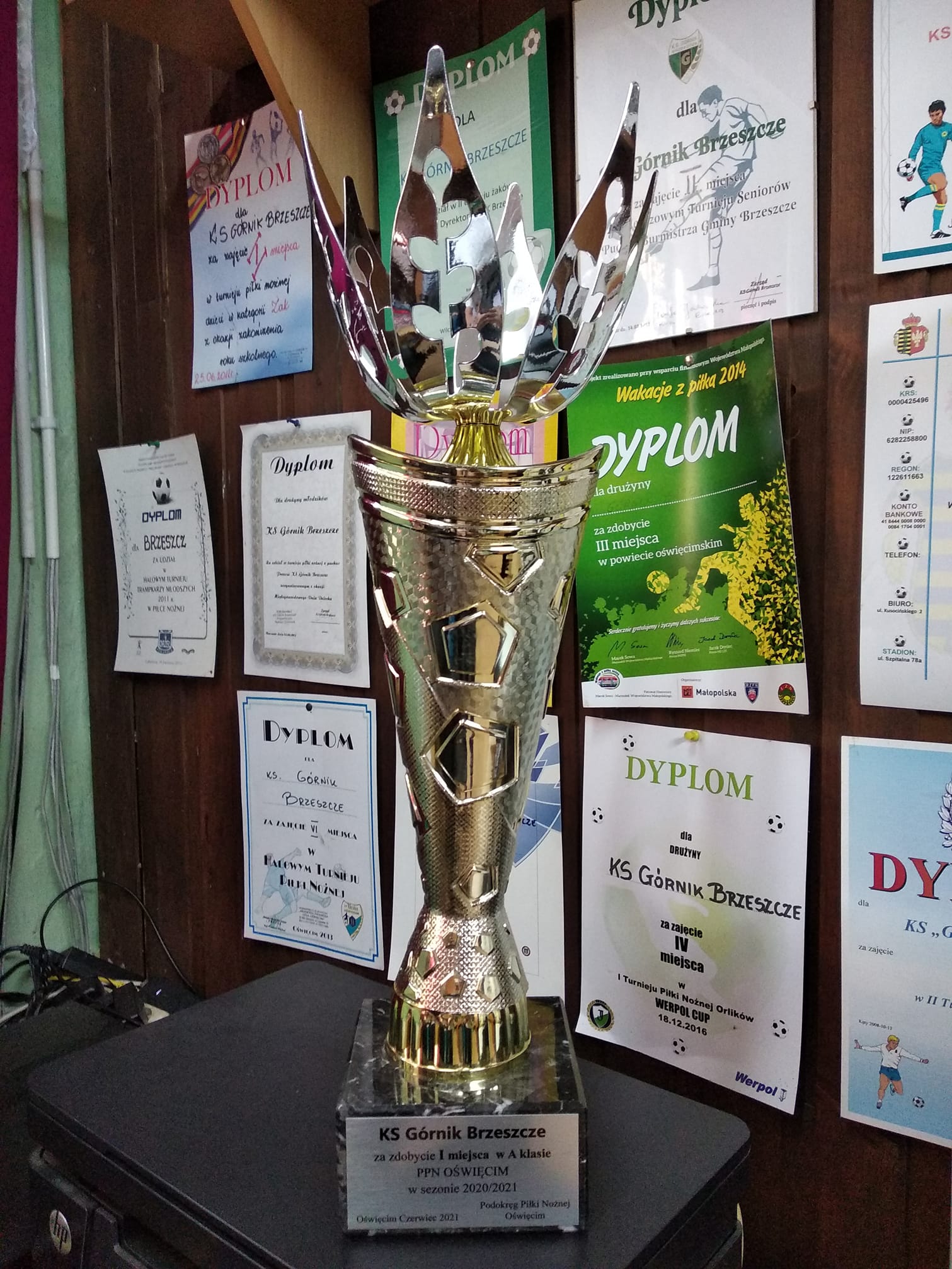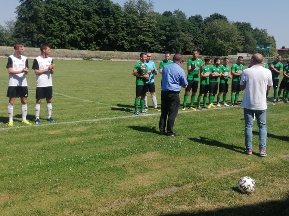 Ekipa Górnika Brzeszcze tuż przed spotkaniem z Polanką, ostatnim w tym sezonie rozgrywanym u siebie, oficjalnie odebrała Puchar dla najlepszej drużyny oświęcimskiej A-klasy.
