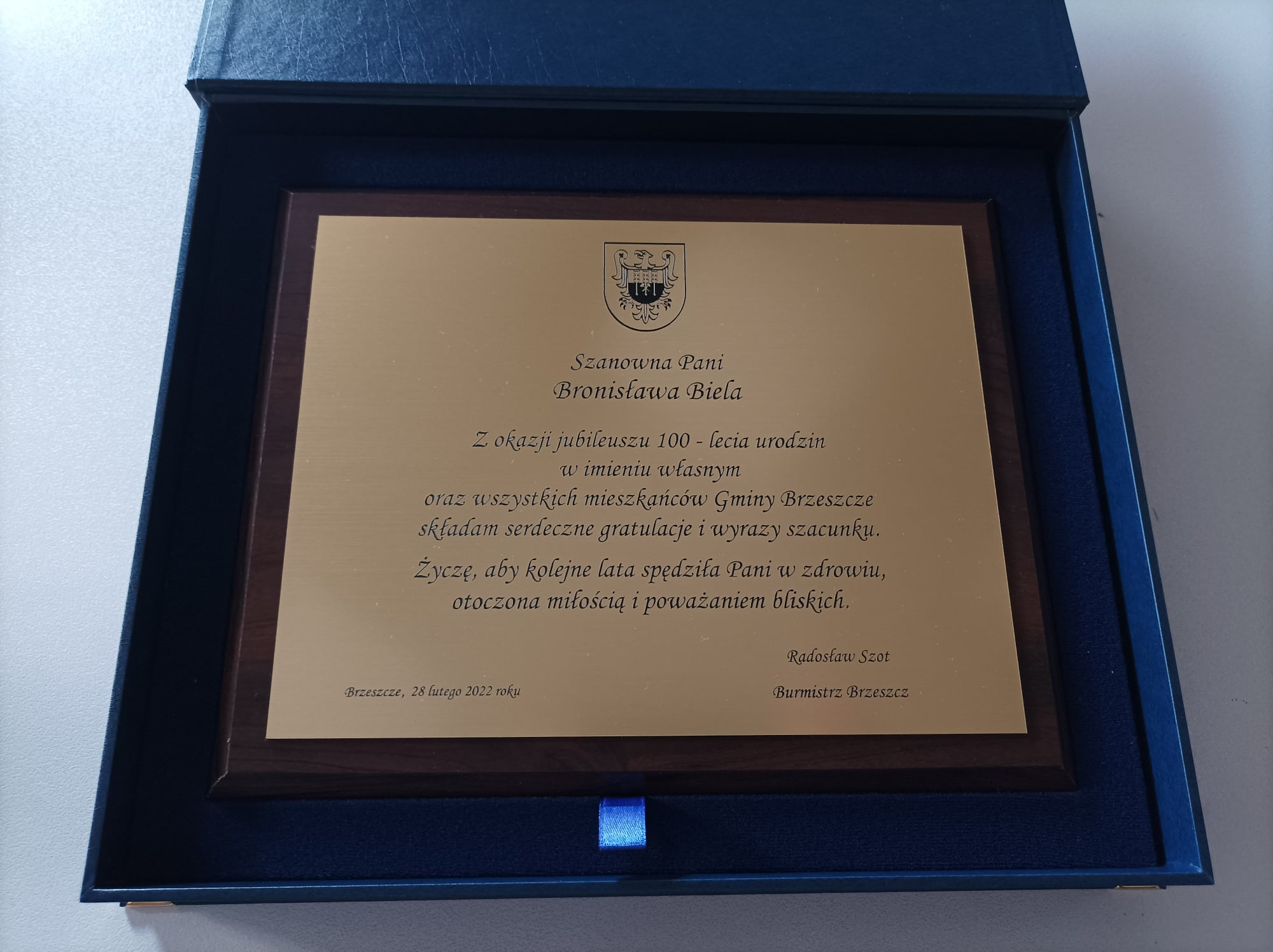Pani Bronisława cieszy się dobrym zdrowiem i niesamowitą pamięcią. Życzenia od Burmistrza, którego jak sama wspominała pamięta jeszcze jako kilkuletniego chłopca, przyjęła z radością i nieukrywanym wzruszeniem. W setne urodziny Jubilatka – oprócz wiązanki kwiatów i okolicznościowego prezentu – otrzymała listy gratulacyjne i życzenia od Premiera Mateusza Morawieckiego i Wojewody Łukasza Kmity.