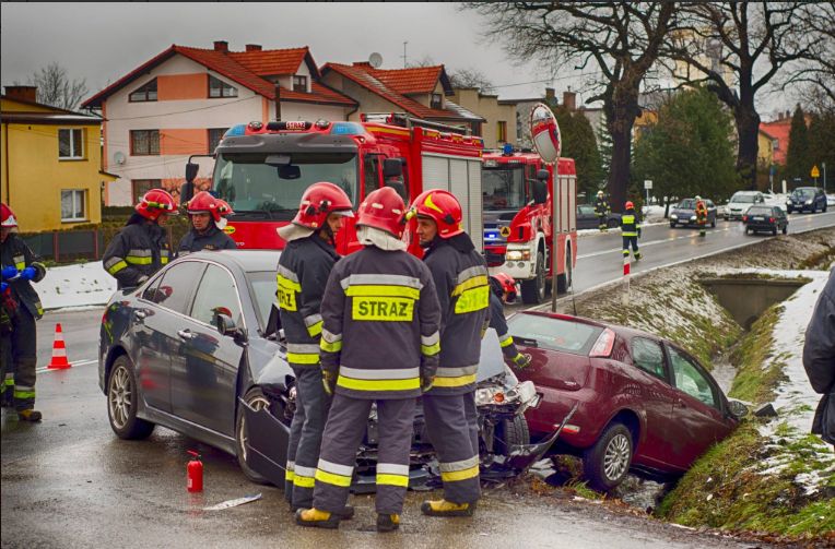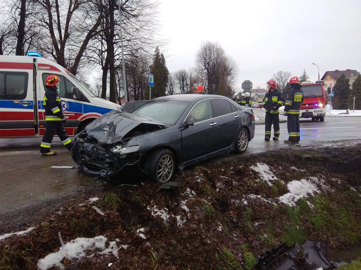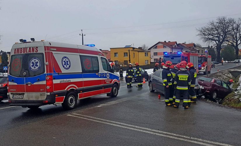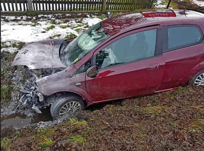 66-letnia mieszkanka Gminy Brzeszcze, kierując samochodem marki Fiat Punto, podczas skrętu w lewo zderzyła się z jadącym z przeciwka samochodem marki Honda Accord, którym kierował 29-letni mieszkaniec Pisarzowic. Po zderzeniu z hondą punto zjechało do rowu.
