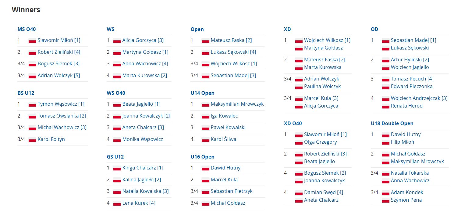 „Na tym turnieju zadebiutowało aż dziesięciu nowych zawodników. Ośmiu reprezentowało barwy naszego klubu – Speed Club Brzeszcze. Swój bojowy chrzest przeszło trzech seniorów w kategoriach Open oraz 40+ mężczyzn” – zaznacza Beata Jagiełło, organizatorka turnieju i zarazem najbardziej utytułowana zawodniczka brzeszczańskiego klubu.