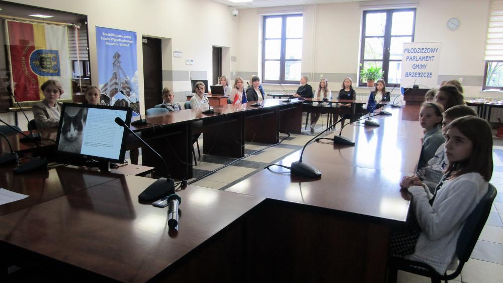 Pierwsze posiedzenie Młodzieżowego Parlamentu Gminy Brzeszcze w roku szkolnym 2022/2023 poprowadzili uczniowie Zespołu Szkolno – Przedszkolnego nr 4 z Oddziałami Integracyjnymi w Brzeszczach, którzy przygotowali prezentację multimedialną oraz zainicjowali dyskusję dotyczącą praw zwierząt. Temat ten został wybrany nieprzypadkowo – każdego roku właśnie 4 października obchodzony jest Światowy Dzień Zwierząt.