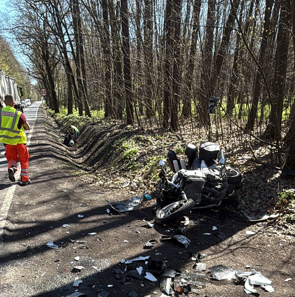 Wczoraj (16.04.2025) o godzinie 10.30 w miejscowości Jawiszowice na ulicy Łęckiej doszło do wypadku drogowego z udziałem samochodu osobowego i motocyklisty.