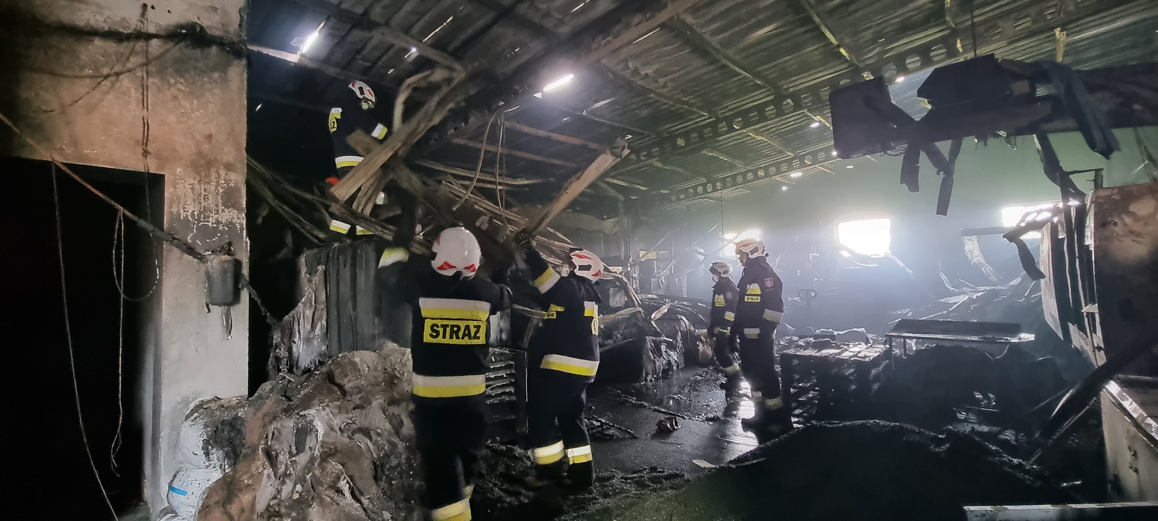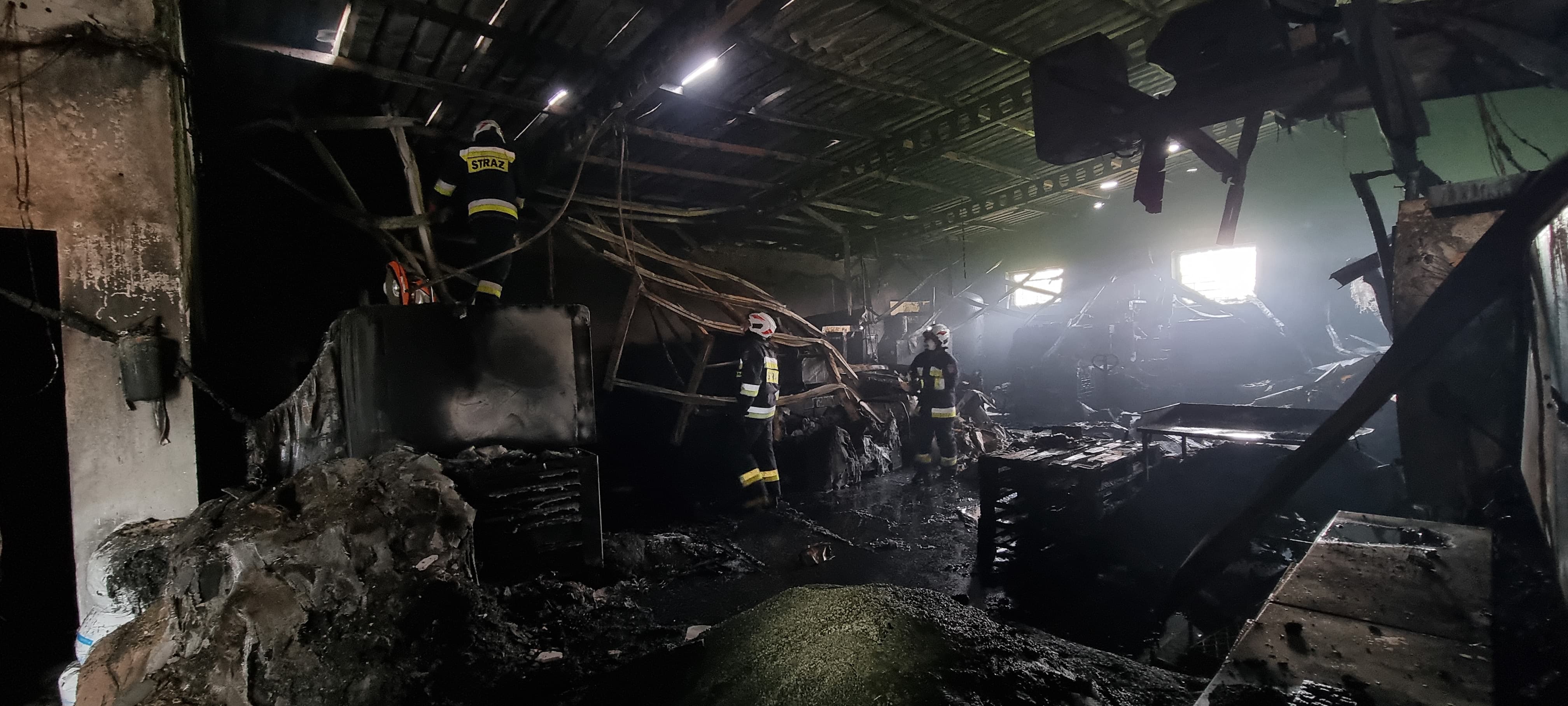 „Po przybyciu na miejsce i rozpoznaniu sytuacji stwierdziliśmy rozwinięty pożar hali, w której przetwarzane były tworzywa sztuczne. W bezpośrednim sąsiedztwie miejsca pożaru, znajdował się budynek mieszkalny. Pracownicy przed przybyciem pierwszego zastępu sami opuścili warsztat” – mówi Dawid Burzacki, dowódca pierwszego zastępu, który przybył na miejsce.