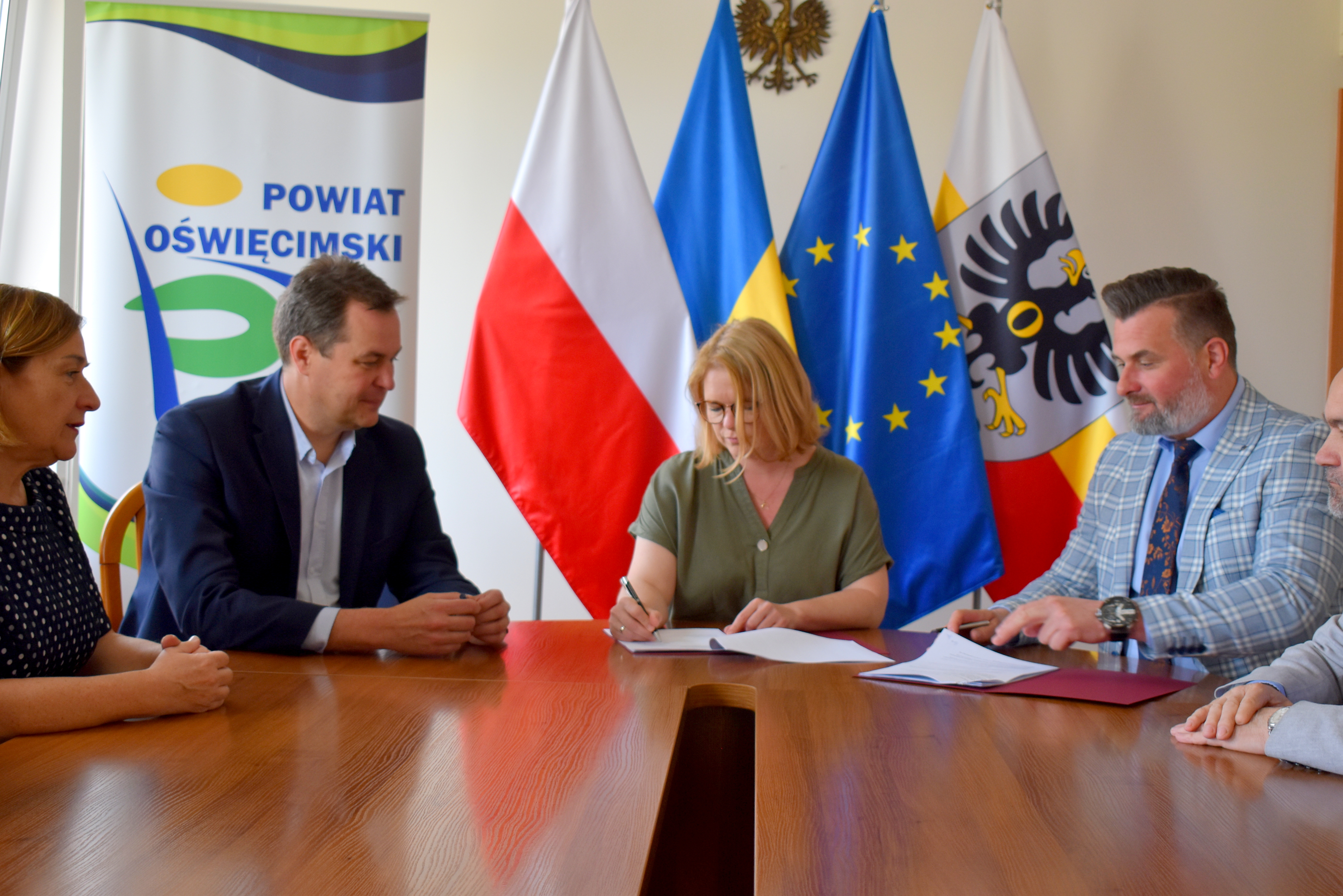 Umowę na przygotowanie Programu ze strony Powiatu podpisali dziś starosta Andrzej Skrzypiński i wicestarosta Paweł Kobielusz. Stowarzyszenie „Nasz Bocian” reprezentowała jego przewodnicząca Marta Górna. Świadkami wydarzenia byli członek zarządu powiatu Jerzy Mieszczak, skarbniczka Powiatu Katarzyna Wanat i naczelniczka wydziału edukacji, zdrowia i spraw społecznych Monika Stalica.