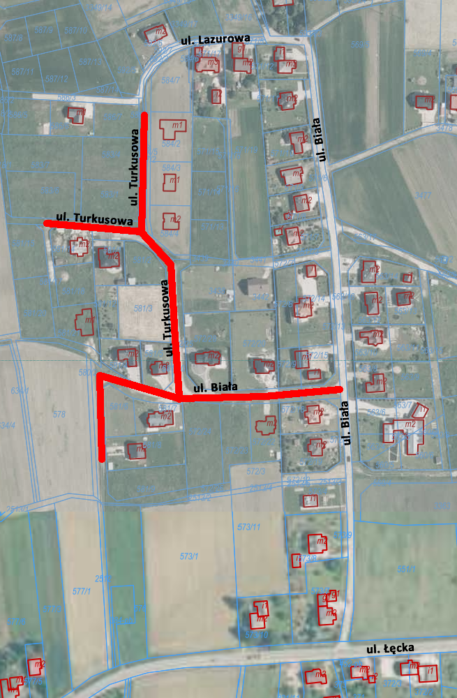 | ul. Turkusowa oraz ul. Biała – odcinek boczny do ul. Turkusowej w Jawiszowicach | 24.03.2022 – 30.04.2022 (roboty montażowe kanalizacji sanitarnej) |
