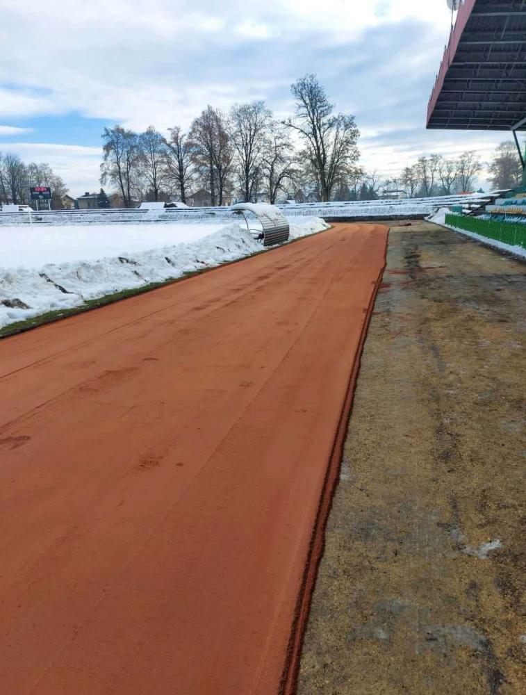Ponadto zmodernizowana została nawierzchnia bieżni. Wykonano profilowanie, zagęszczanie podłoża, a następnie ułożono miał ceglany.