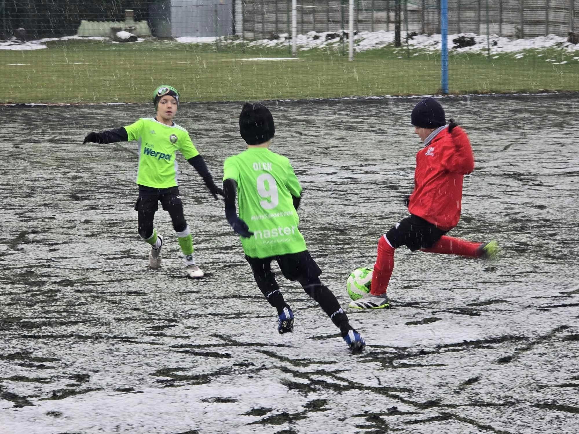 Przeciwnik był trudny. Pogoda zdecydowanie nie pomogła cieszyć się grą… Cieszy jednak, że młodzi zawodnicy wyciągnęli maksimum nauki z tej piłkarskiej lekcji.