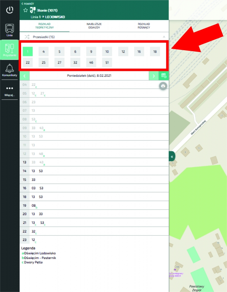 - Linia 1 kursować będzie z Leszczyńskiej Pętla przez: Dworzec PKP, os. Błonie, Miasto, os. OCK, Słowackiego, Lodowisko, Monowice, Włosienica do Stawów Monowskich,