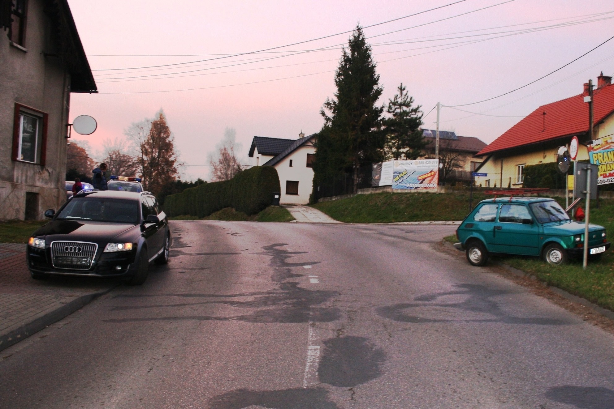 24 listopada tuż przed godziną 15.00 służby ratunkowe interweniowały w związku z wypadkiem drogowym, do którego doszło w Jawiszowicach na skrzyżowaniu ulic Bielskiej z Pocztową. Policjanci wstępnie ustalili, że 34-letni mieszkaniec powiatu bielskiego, kierując samochodem marki Audi,  najechał na tył  samochodu marki Fiat 126p, którego kierująca zatrzymała się przez skrzyżowaniem, aby wykonać manewr skrętu w lewo.