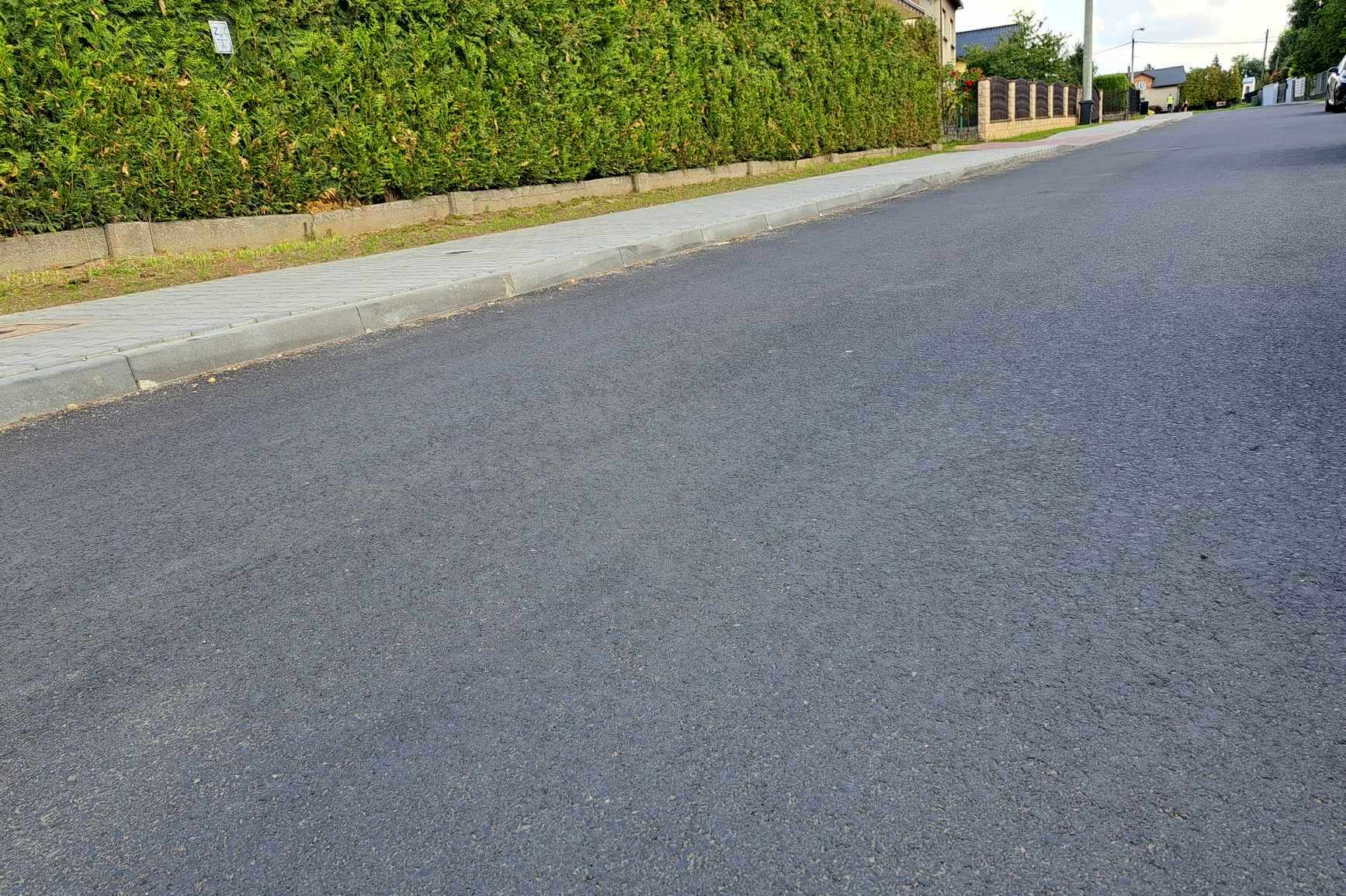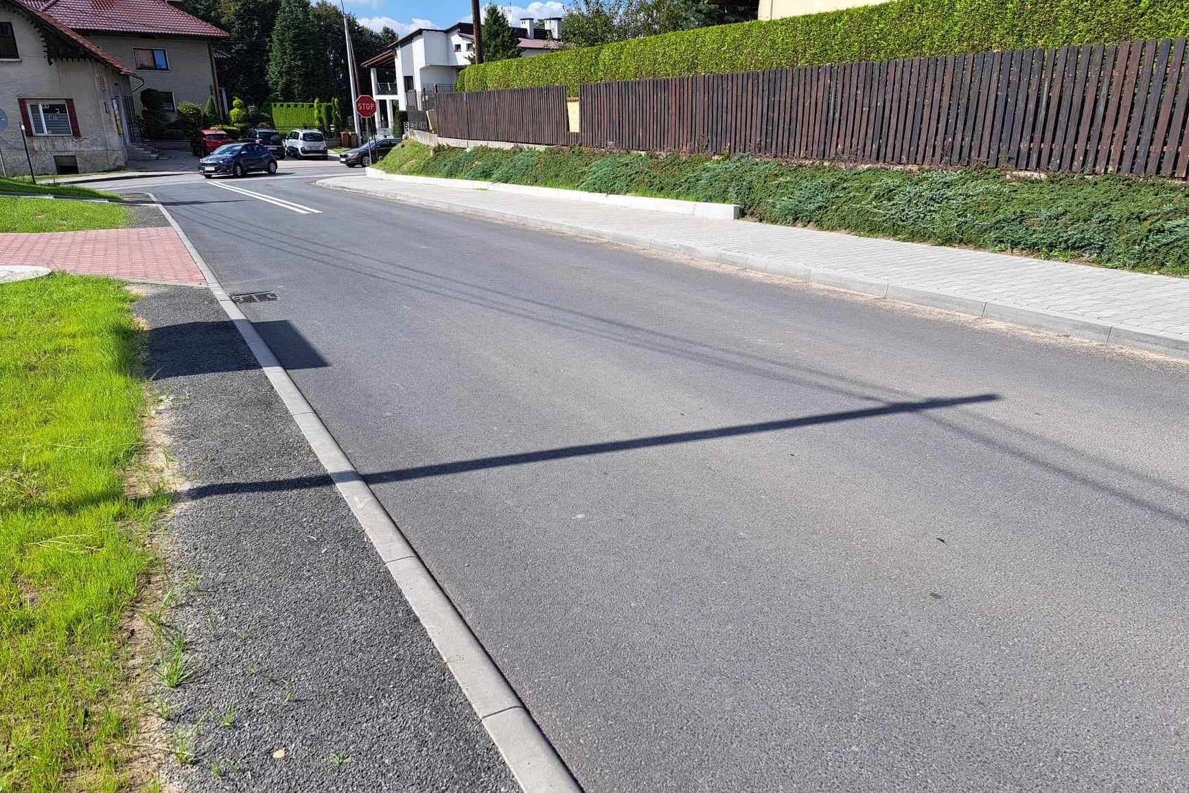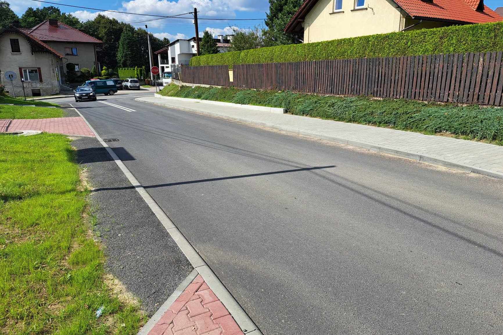 Roboty zaczęły się w czerwcu ub. roku. Inwestycja polega na przebudowie drogi na odcinku 800 m od skrzyżowania z drogą powiatową nr 1876K ul. Bielska. W ramach zadania położono nową nawierzchnię jezdni, wykonano chodnik, zjazdy i dojścia indywidualne, pobocza, kanalizację deszczową. Wymieniono lustra drogowe oraz wykonano oznakowanie poziome i pionowe drogi.