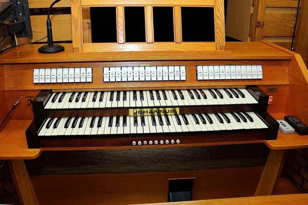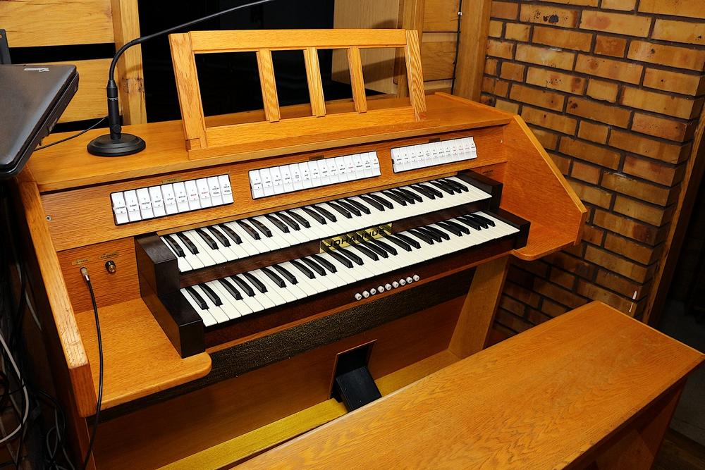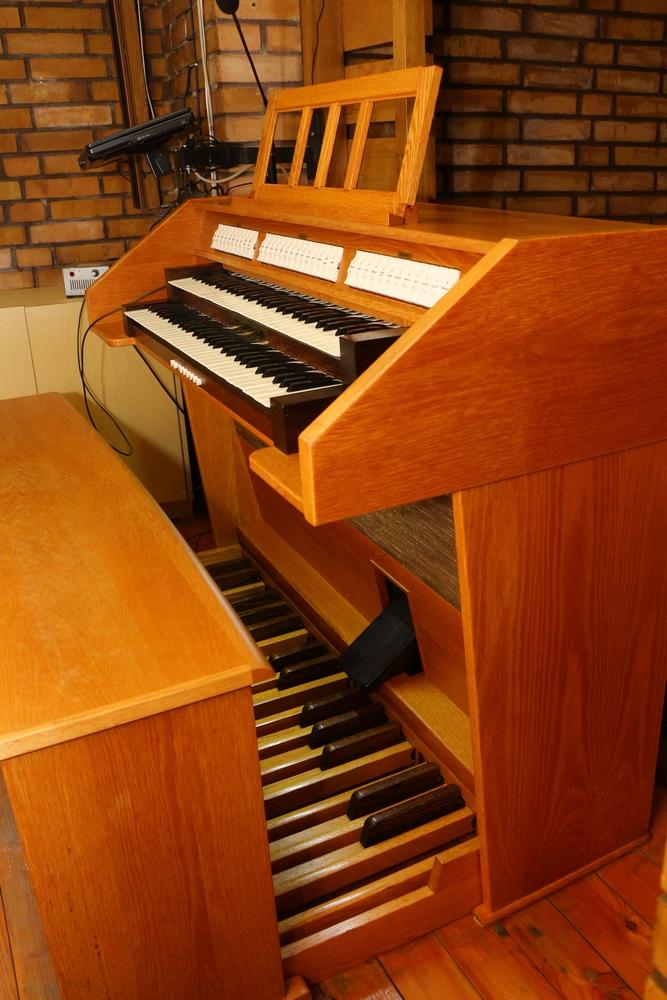 Dwa profilowane manuały po 5 oktaw każdy. Liczba głosów 30 w tym 11 głosów do I manuału oraz 11 głosów do II manuału i 8 głosów do pedału nożnego. 30 tonowa elektromagnetyczna klawiatura nożna prosta.