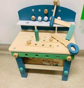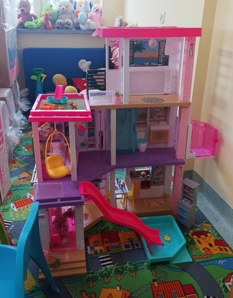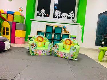 • Zabawki i wyposażenie kącika dla dzieci: domek dla lalek , zestaw edukacyjny – warsztat majsterkowicza, puzzle piankowe/mata, sensoryczna tablica manipulacyjna, klocki Waffle mini, pufy z granulatem, fotele piankowe