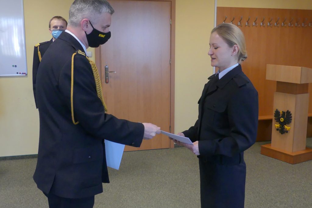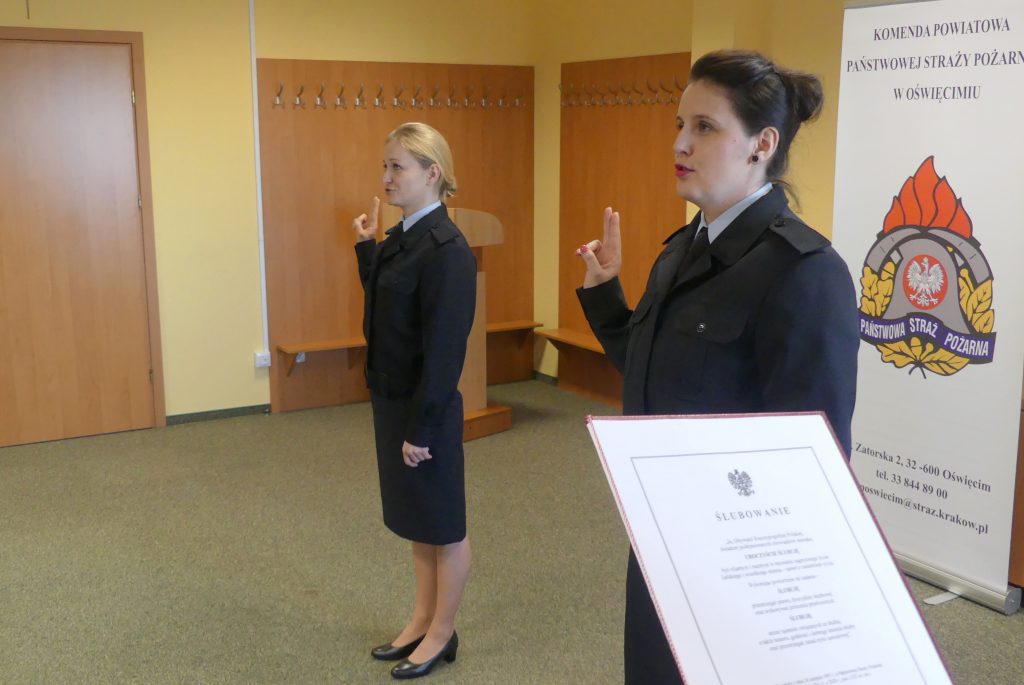 W Komendzie Powiatowej PSP w Oświęcimiu odbyło się ślubowanie nowo przyjętych funkcjonariuszy Państwowej Straży Pożarnej. Rotę ślubowania złożyły Anna Chorabik i Anna Piela. Obu paniom w strażackich mundurach życzymy wielu sukcesów na nowej drodze zawodowej.