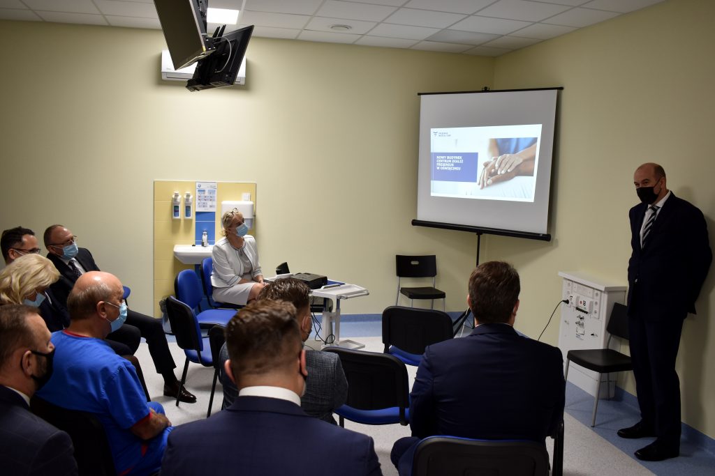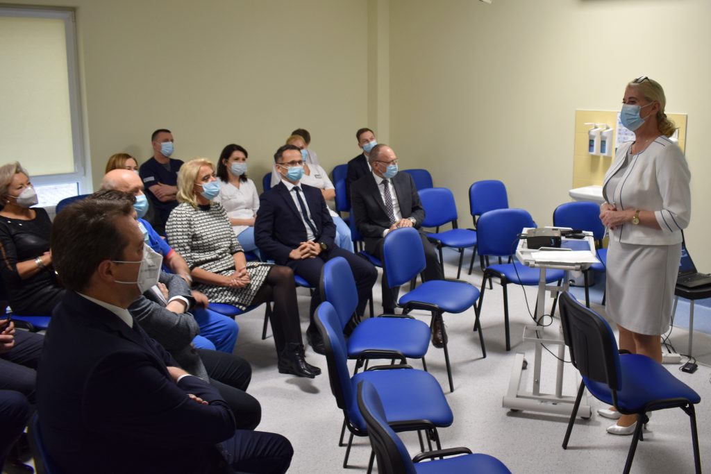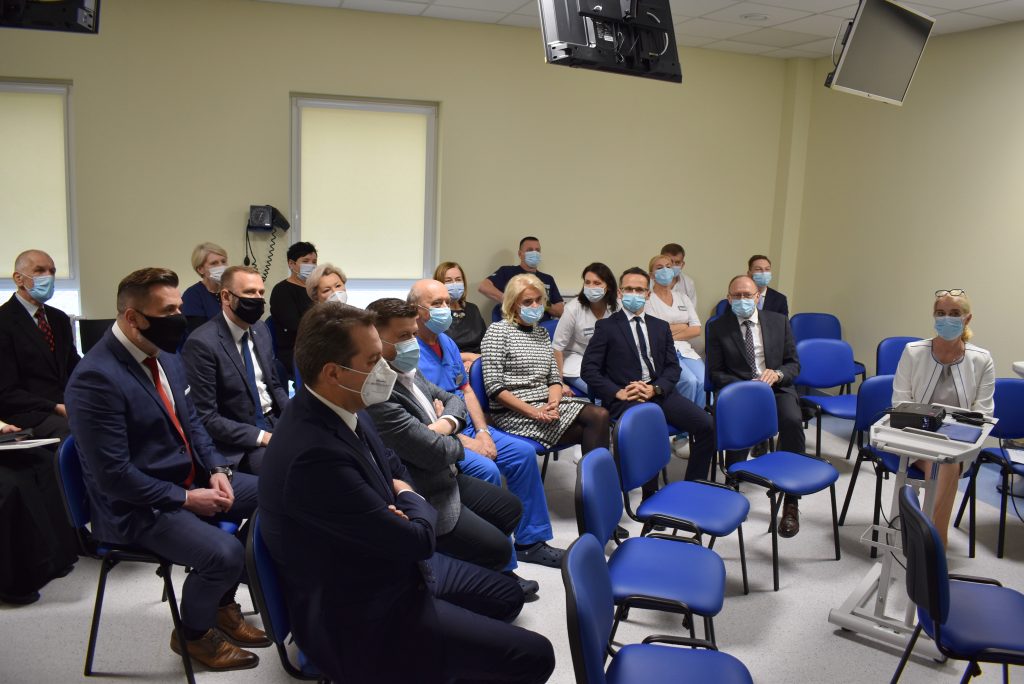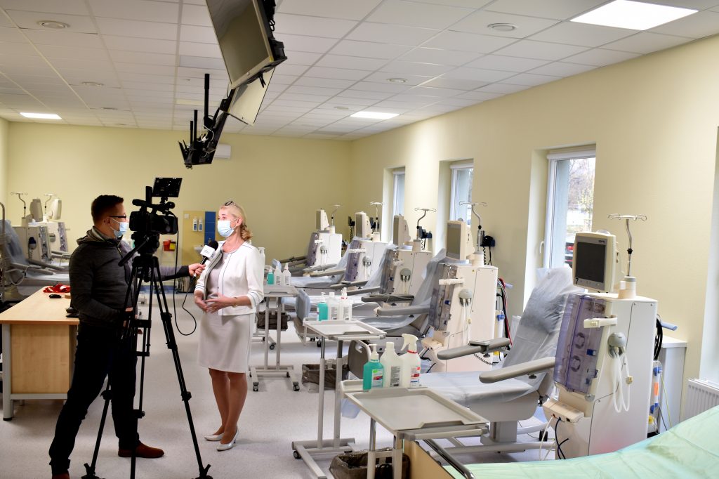 Tomasz Krummel, członek zarządu spółki wspomniał m.in. o dobrej współpracy z Zarządem Powiatu i dyrekcją szpitala przy realizacji inwestycji. O szczegółach dot. wyposażenia obiektu mówiła dr Magdalena Sobaszek-Pitas. W liczącym 700 m kw. budynku mieszczą się trzy sale dializacyjne (z docelowo 25 stanowiskami), szatnie dla pacjentów, gabinety personelu, pomieszczenia socjalne.