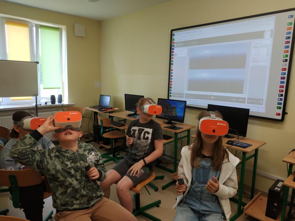 - wirtualne laboratorium – komputery oraz komplety gogli VR z niezbędnymi akcesoriami i oprogramowaniem. Ich zastosowanie pozwoli stworzyć kompletne laboratorium przyszłości – wizualizacje miejsc w trybie 360°, trójwymiarowe obiekty i złożone struktury na wyciągnięcie ręki to wszystko przenosi lekcje w zupełnie inny wymiar, wzbogacając realizację podstawy programowej z wielu przedmiotów m.in. biologii, chemii, fizyki, geografia, historii, matematyki, sztuki i muzyki.