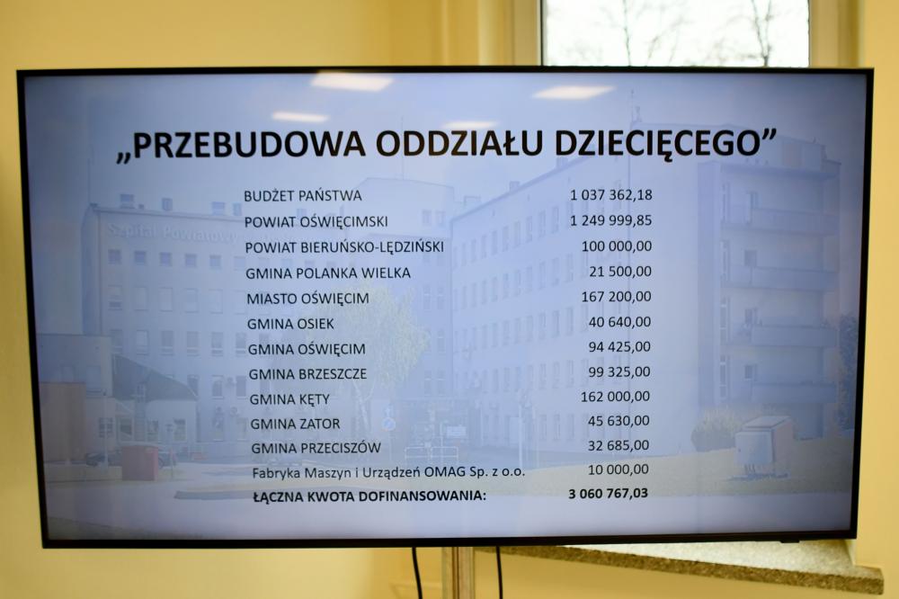 - środków własnych Szpitala Powiatowego w Oświęcimiu – ponad 1,6 mln zł,