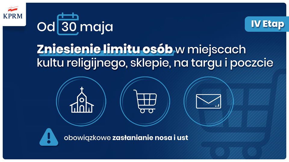 ZNOSIMY LIMITY OSÓB – W SKLEPACH, NA TARGU, POCZCIE, W RESTAURACJACH (od 30 maja)