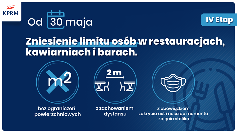 Znosimy limity osób w branży handlowej i gastronomicznej. Do tej pory w sklepie, restauracji, na targu, w punkcie usługowym czy na poczcie na 1 osobę musiała przypadać określona powierzchnia lub liczba okienek. Od 30 maja ta zasada przestaje obowiązywać.