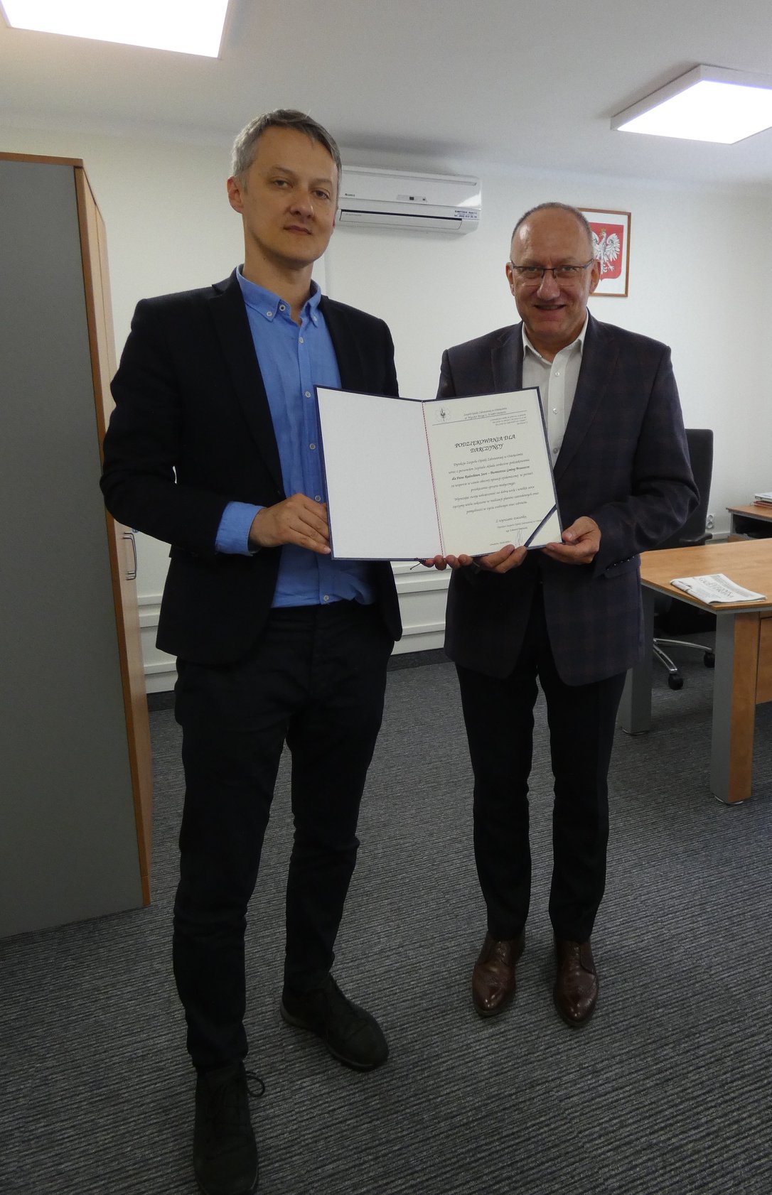 Dyrektor Zespołu Opieki Zdrowotnej w Oświęcimiu Edward Piechulek na spotkaniu z Burmistrzem Brzeszcz Radosławem Szot oficjalnie podziękował za wsparcie, którego Gmina udzieliła oświęcimskiemu szpitalowi.
