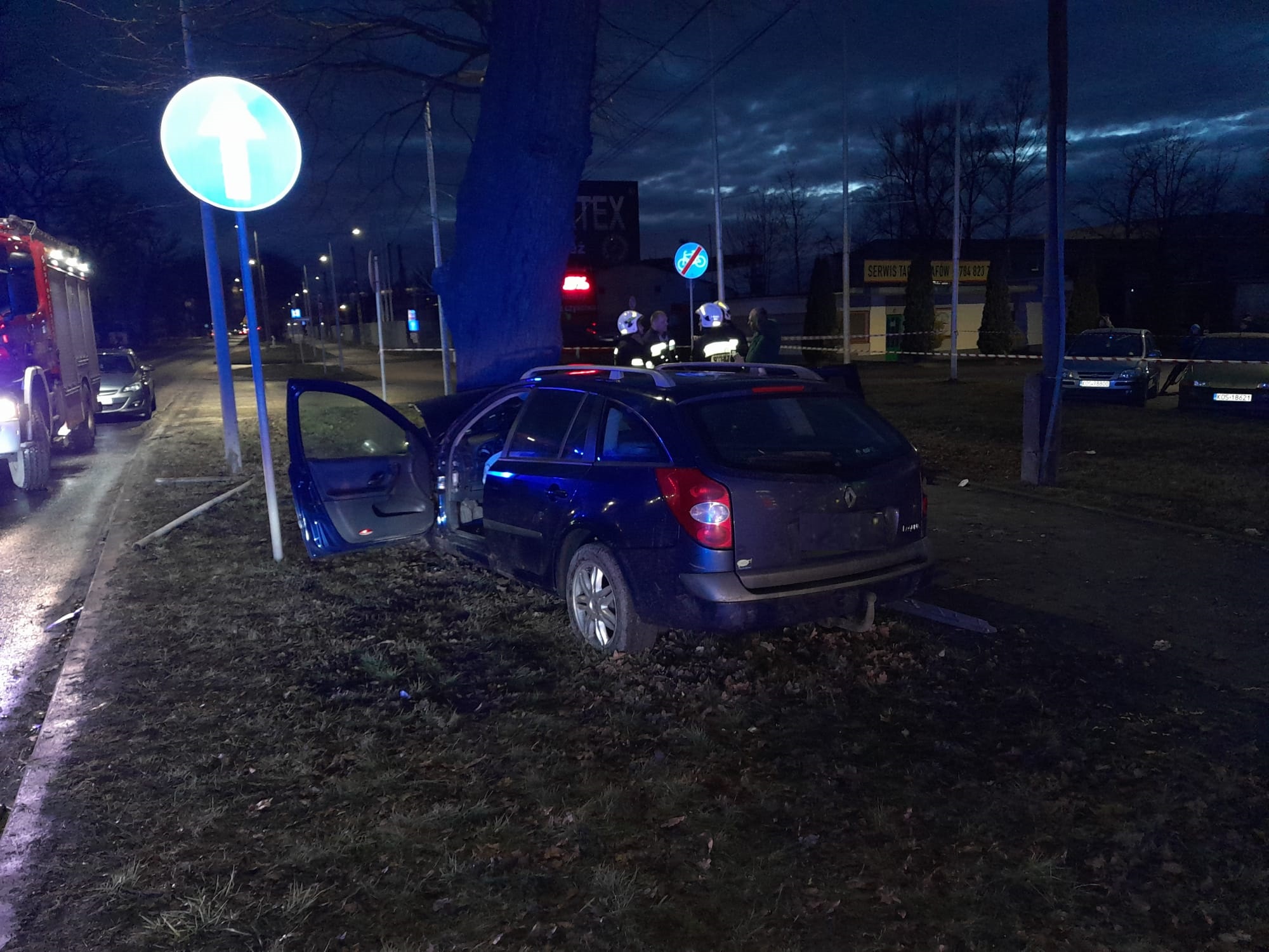Do szpitala karetkami Pogotowia Ratunkowego przetransportowani zostali kierowca renault oraz jego 14-letni syn.