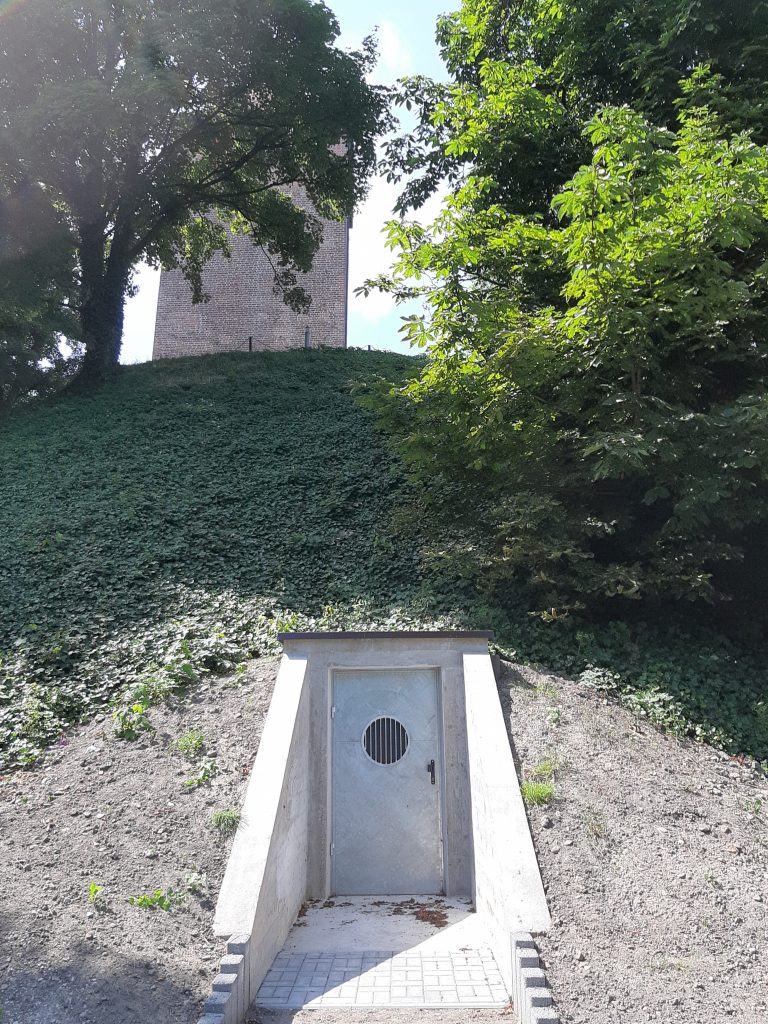 Pod średniowieczną budowlą są dwa tunele. Wybudowali je Austriacy i Niemcy. Jeden przebiega z wschodu na zachód i łączy przeciwległe zbocza wzgórza. Został wybudowany w czasie zaboru austriackiego, a ostatnio przeprowadzona kwerenda wskazuje okres jego powstanie na koniec XVIII wieku. Jego przekrój ma kształt eliptyczny, a ściany i sklepienie wykonane są z cegły. Drugi pochodzi z czasów okupacji niemieckiej. Przebiega z północy na południe, krzyżując się z austriackim. Ściany i strop są wykonane z żelbetu. Podczas II wojny tunele służyły jako schrony przeciwlotnicze.
