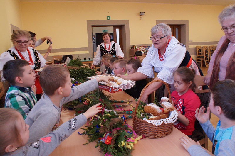 W Domu Ludowym w Skidziniu odbyły się warsztaty dla dzieci, podczas których młodzi uczestnicy uczyli się tworzenia palm wielkanocnych. Zajęcia prowadzone były przez Panie z jawiszowickiego Koła Gospodyń Wiejskich.
