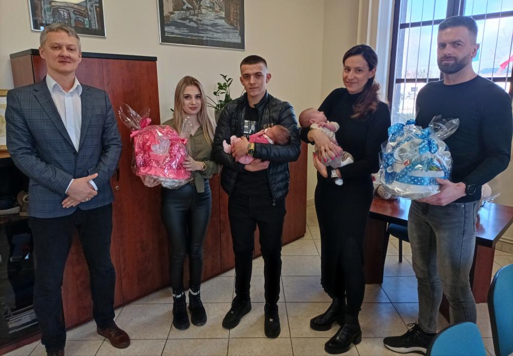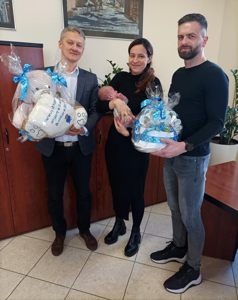 Burmistrz Radosław Szot przyjął w Urzędzie Gminy niecodziennych gości. Kornel oraz Livia to pierwsze dzieci urodzone w 2023 roku w Gminie Brzeszcze. Pani Anicie i panu Michałowu, rodzicom Kornela oraz pani Angelice i panu Dawidowi, rodzicom Livii, Burmistrz złożył życzenia zdrowia oraz przekazał okolicznościowe upominki.