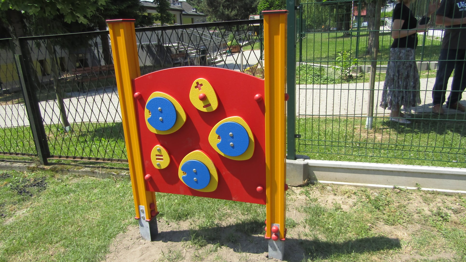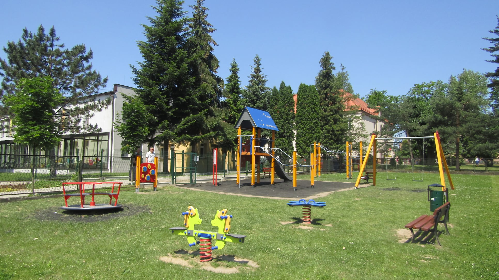 Plac jest wyposażony w karuzelę, bujaki, zestaw sprawnościowy oraz zestaw zabawowy, panel edukacyjny “Matematyka”. Pod sprzętami ułożono zabezpieczające maty przerostowe. Oczywiście nie zabrakło ławek, a także niezbędnych koszy na śmieci.  Plac zabaw jest ogrodzony, a zasady korzystania z miejsca rekreacji określa Regulamin.