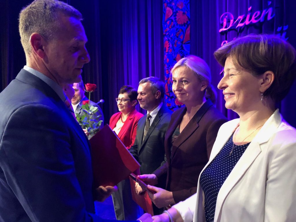 Jak co roku, tradycyjnie wyróżnieni nauczyciele odebrali z rąk starosty Zbigniewa Starca, wicestarosty Jarosława Jurzaka oraz wiceprzewodniczącej Rady Powiatu Iwony Gibas serdeczne gratulacje oraz dyplomy wraz z symboliczną różą, przyznawane za osiągnięcia w dziedzinie edukacji i oświaty.