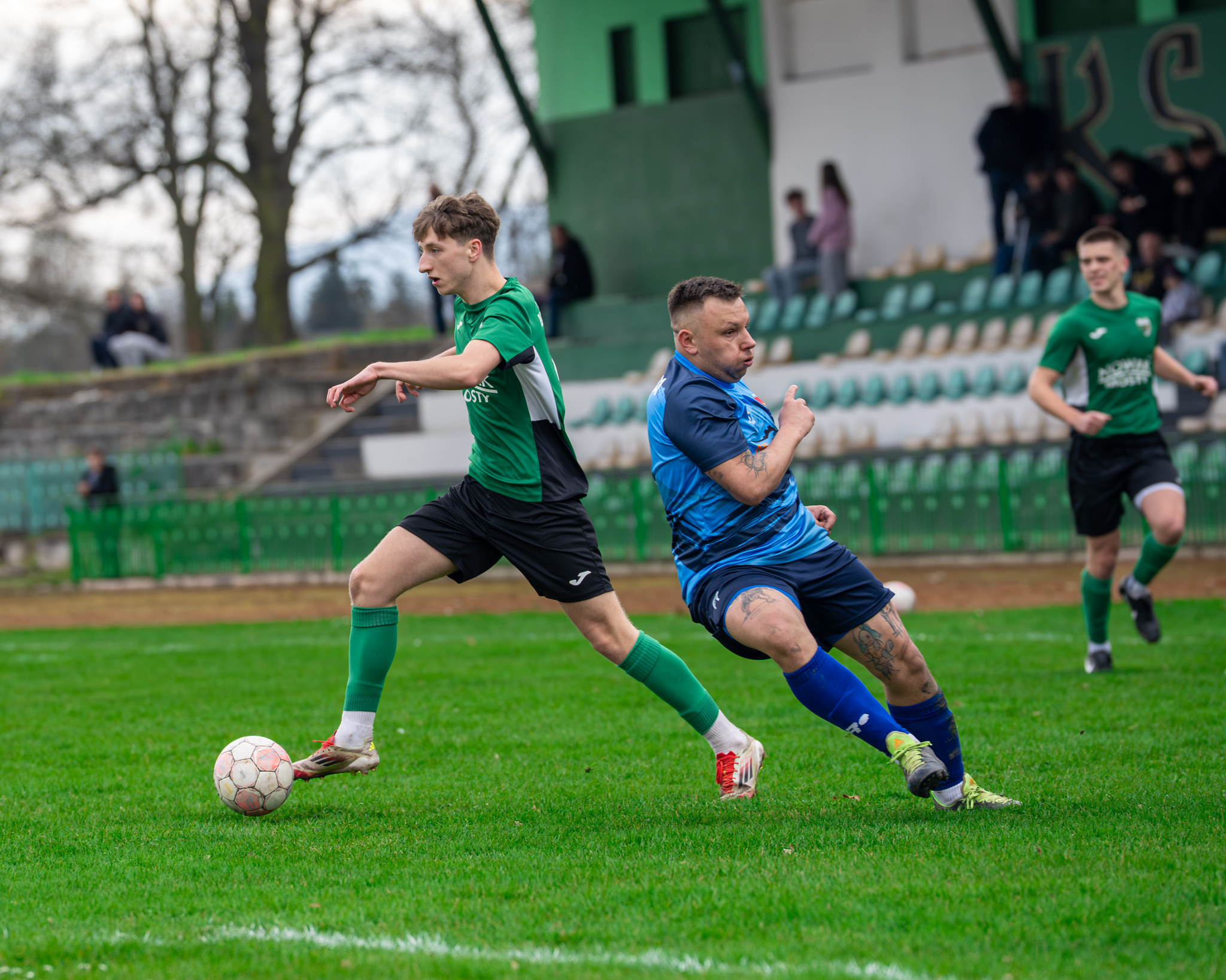 Gospodarze odpowiedzieli jednak jeszcze przed przerwą. Kluczowy moment pierwszej połowy przyszedł po stałym fragmencie gry – po rzucie wolnym do siatki trafił J. Matys, doprowadzając do wyrównania i dając swojej drużynie impuls do dalszej walki.