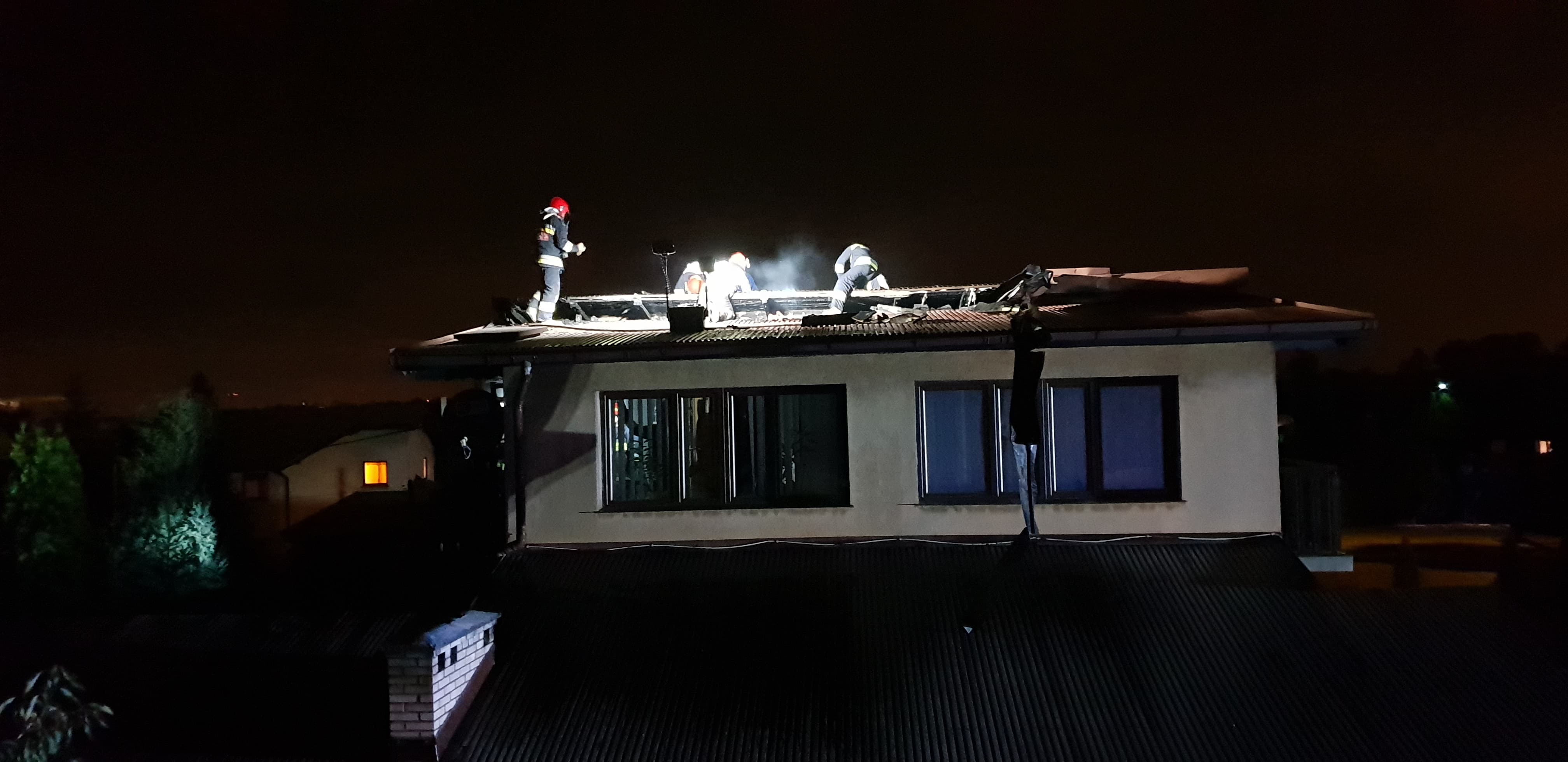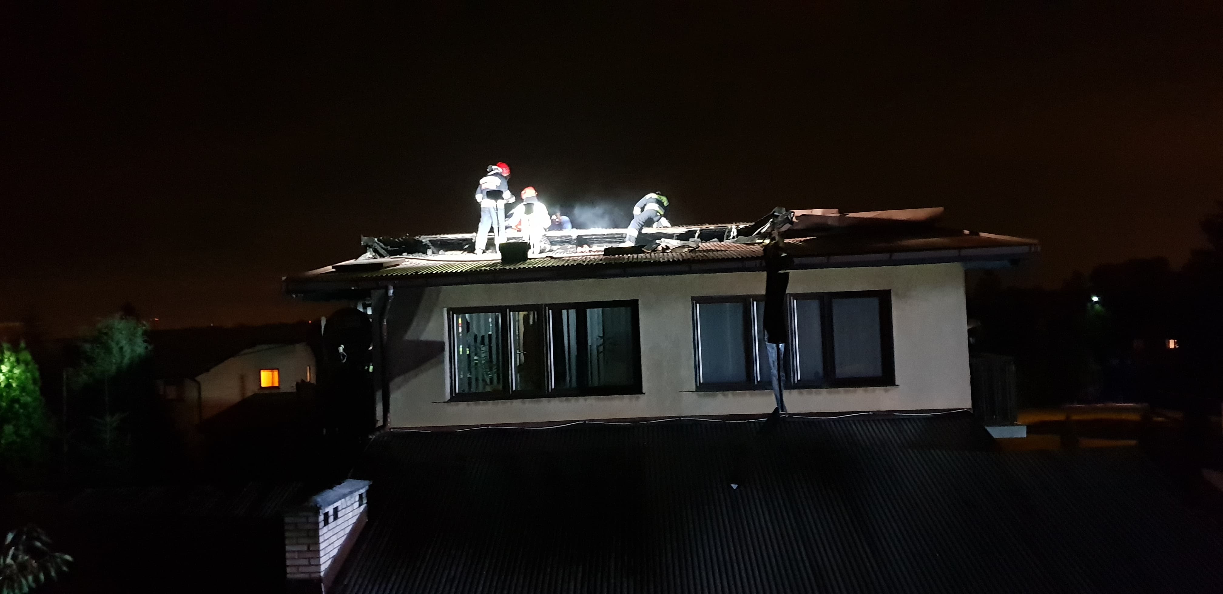 W celu dogaszenia ognia, strażacy musieli rozebrać część nadpalonego poszycia dachu.