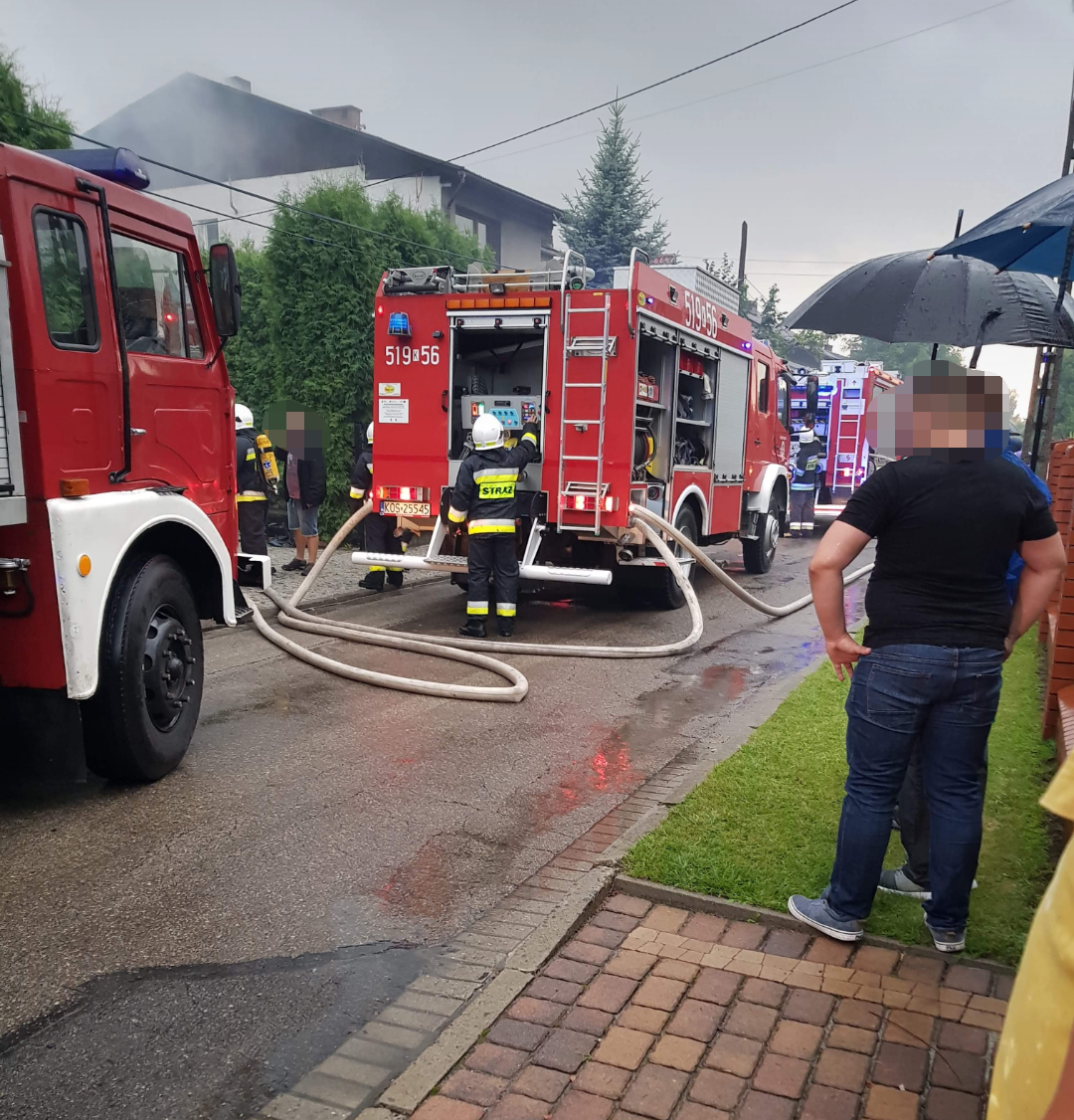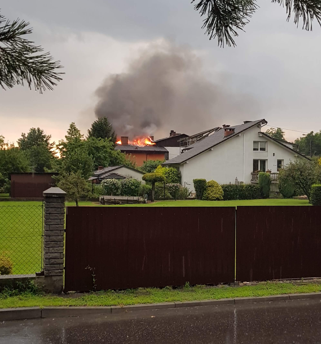 Około godziny 18:00 w Brzeszczach przy ul.Tysiaclecia doszło do pożaru budynku mieszkalnego. Pożar powstał najprawdopodobniej od uderzenia pioruna.