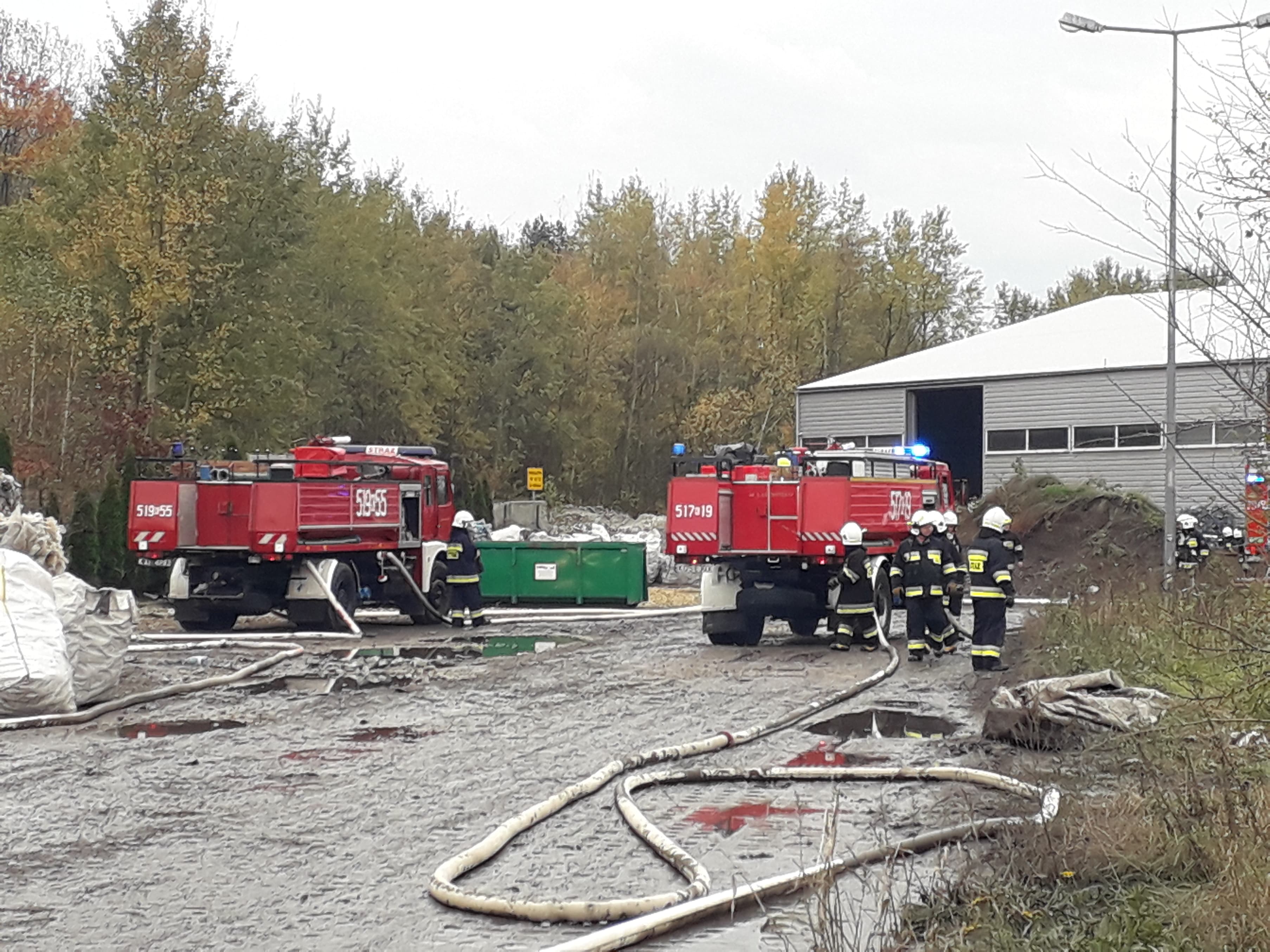 Zadaniem strażaków było zlokalizowanie i rozpoznanie zagrożeń, wprowadzenie odpowiednich procedur ratowniczo-gaśniczych i ugaszenie pożarów- symulowanego w hali przetwórczej odpadów i prawdziwego, który objął składowisko odpadów zielonych.